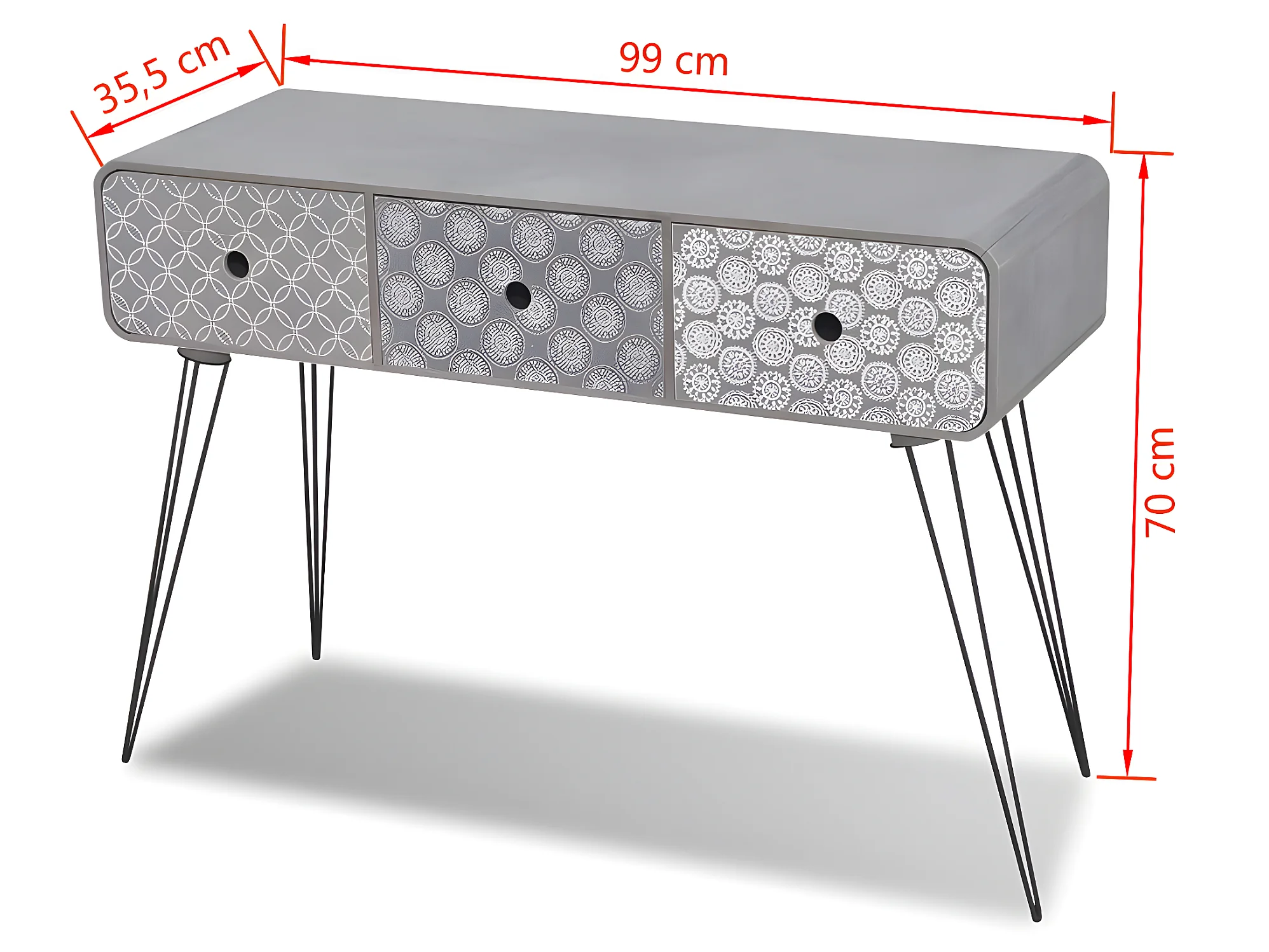 Table console avec 3 tiroirs Gris