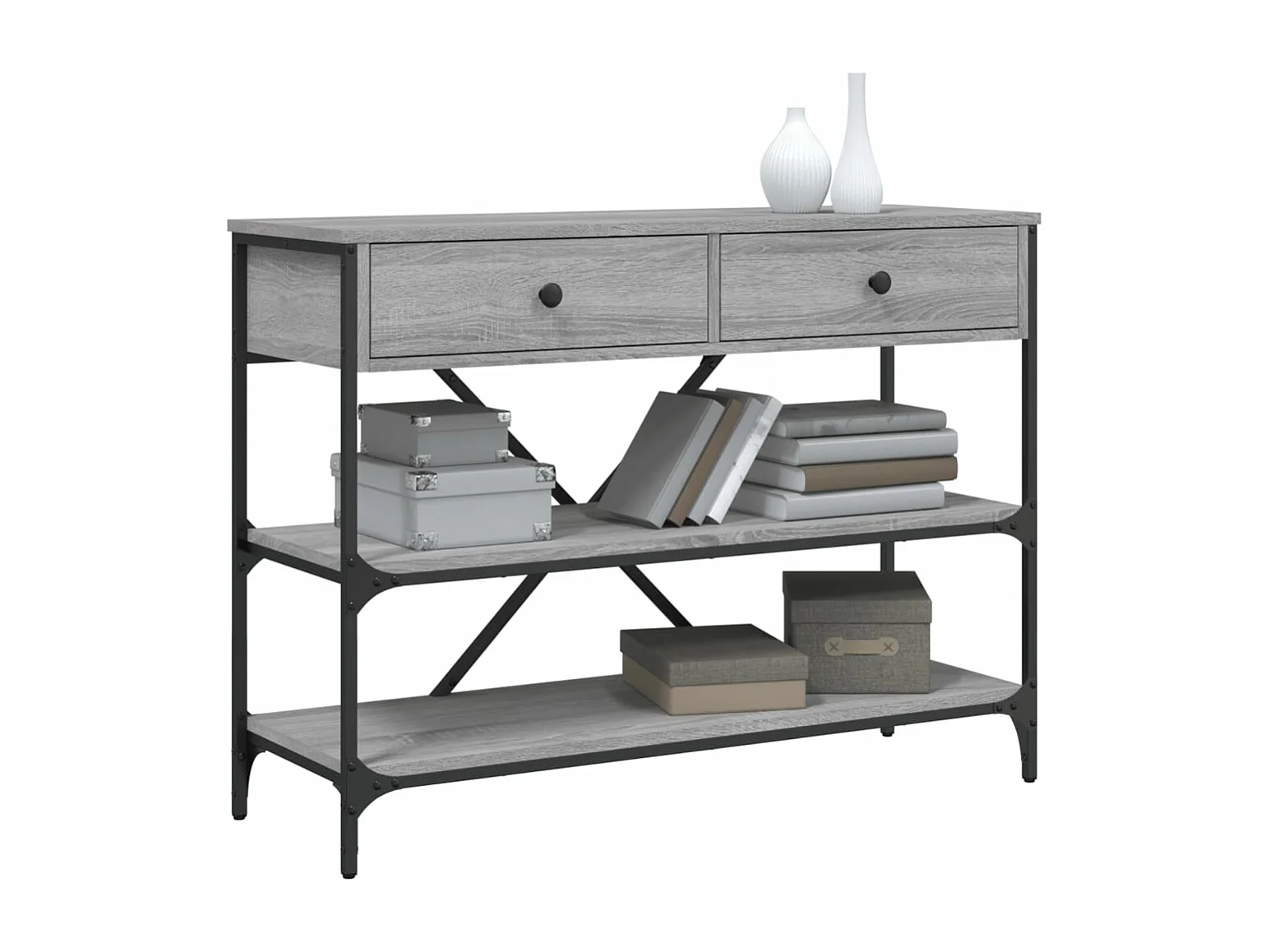 Table console avec étagères sonoma gris 100x35x75
