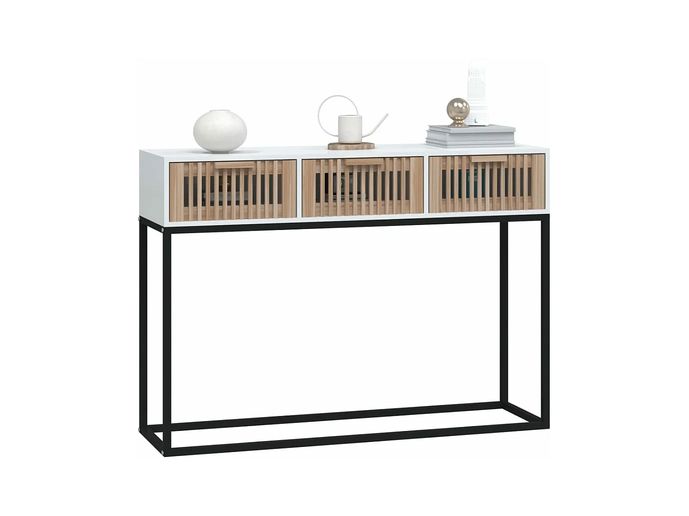 Table console blanc 105x30x75 bois d'ingénierie et fer