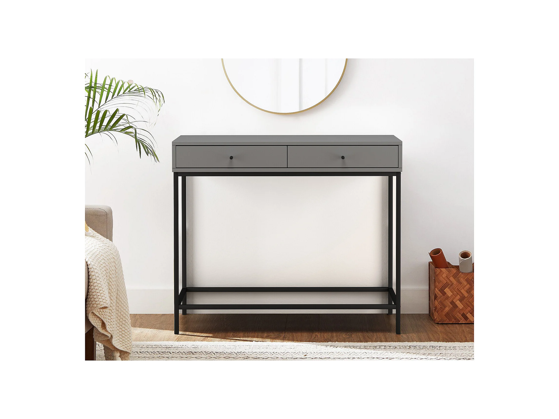Celine|Table console avec 2 tiroirs en mélaminé gris