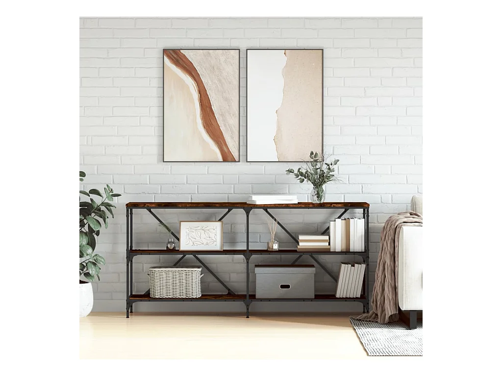 Table console chêne fumé 160x30x75 bois d'ingénierie et fer