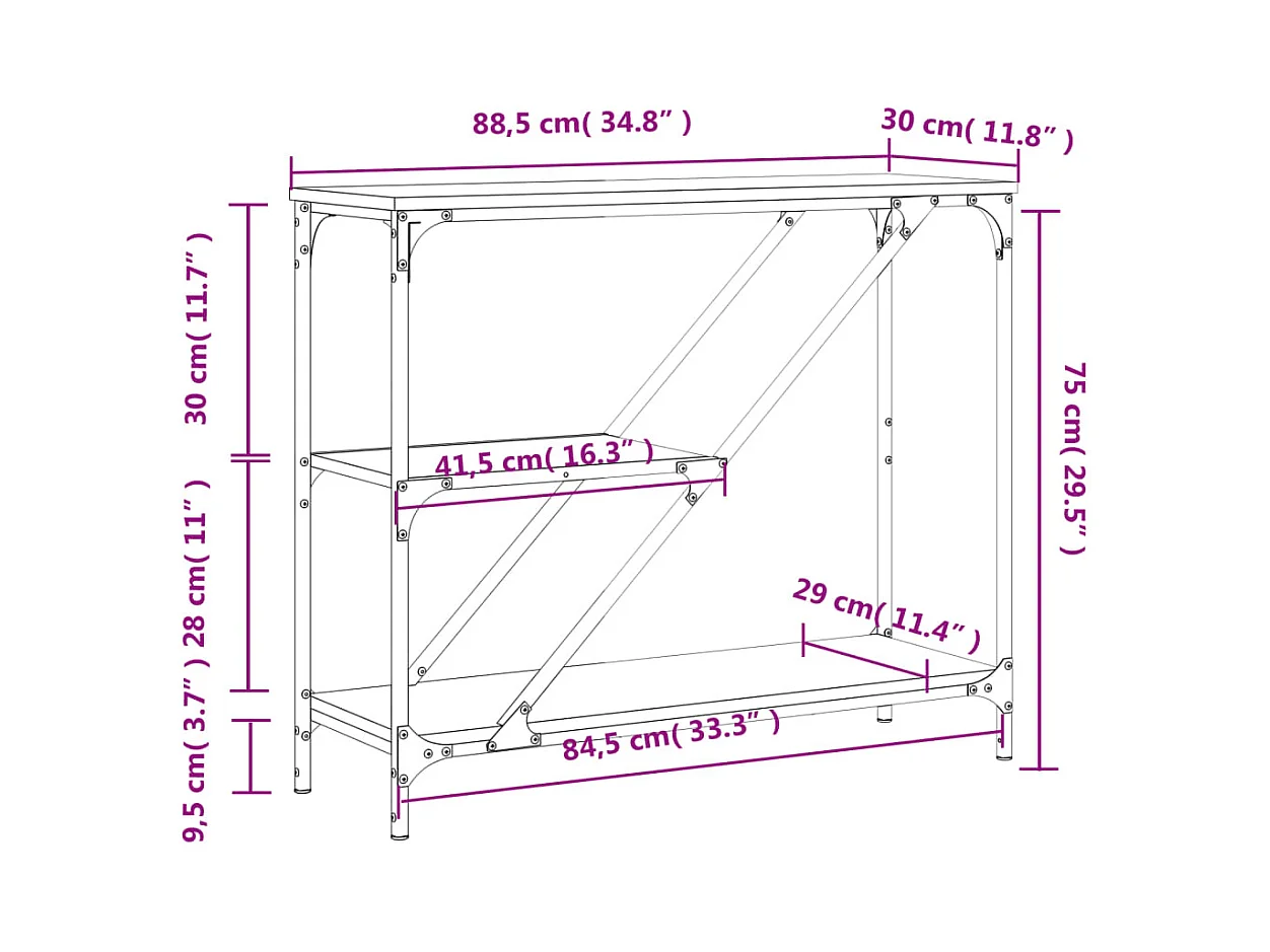 Table console chêne sonoma 88,5x30x75 bois d'ingénierie