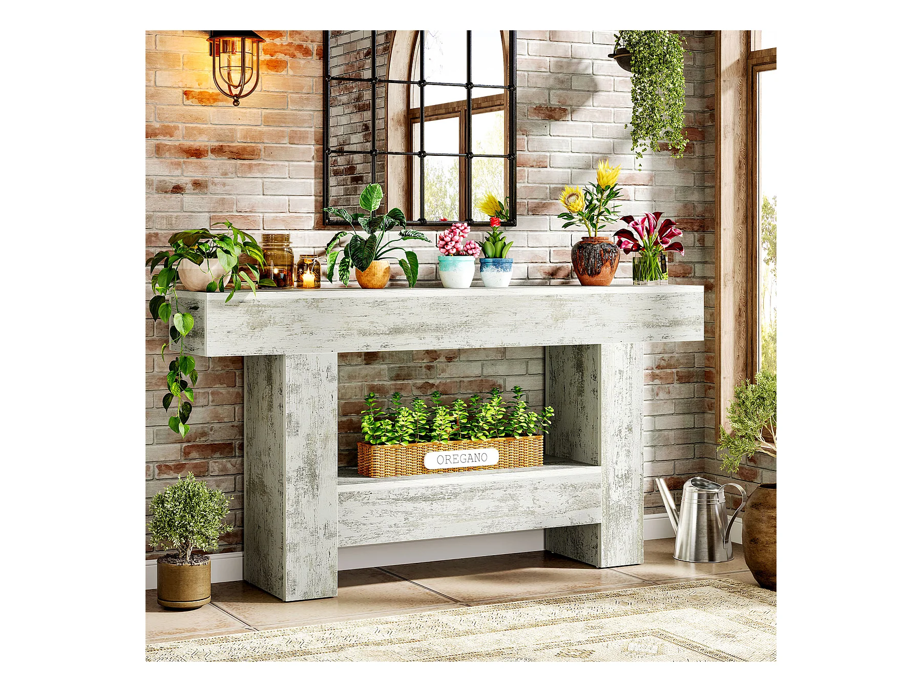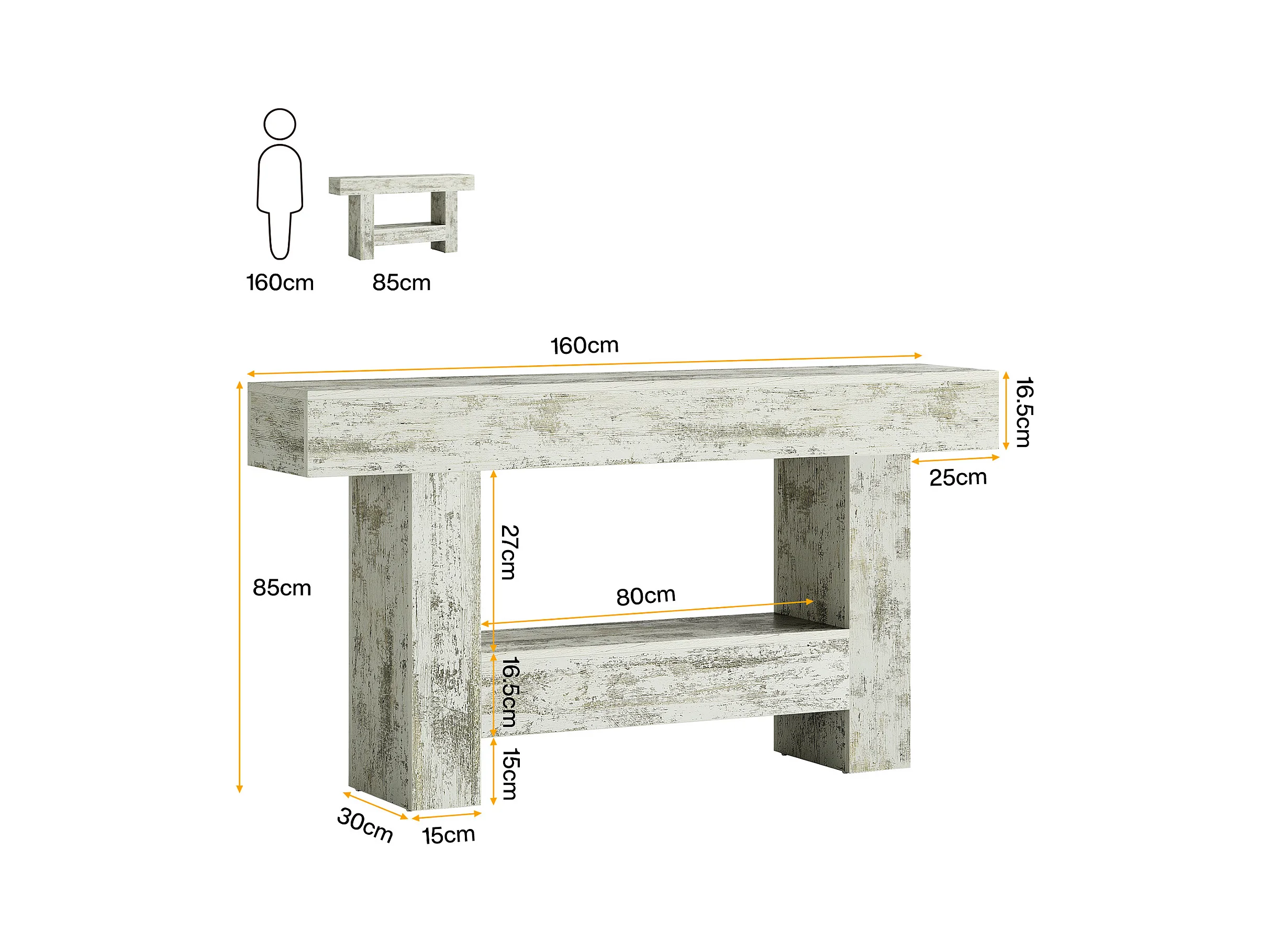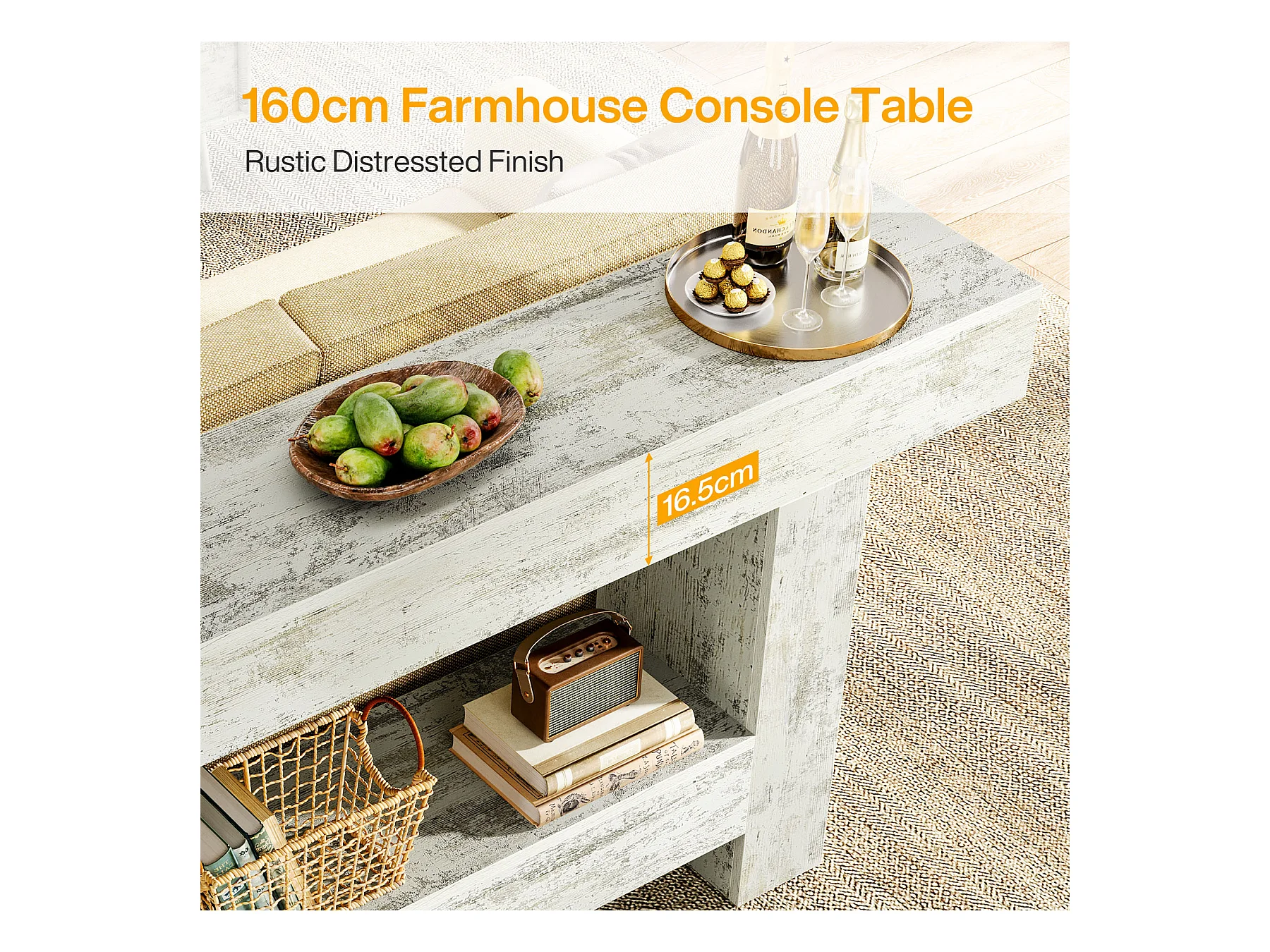 Table console de 160 cm de long, table d'entrée de ferme avec rangement
