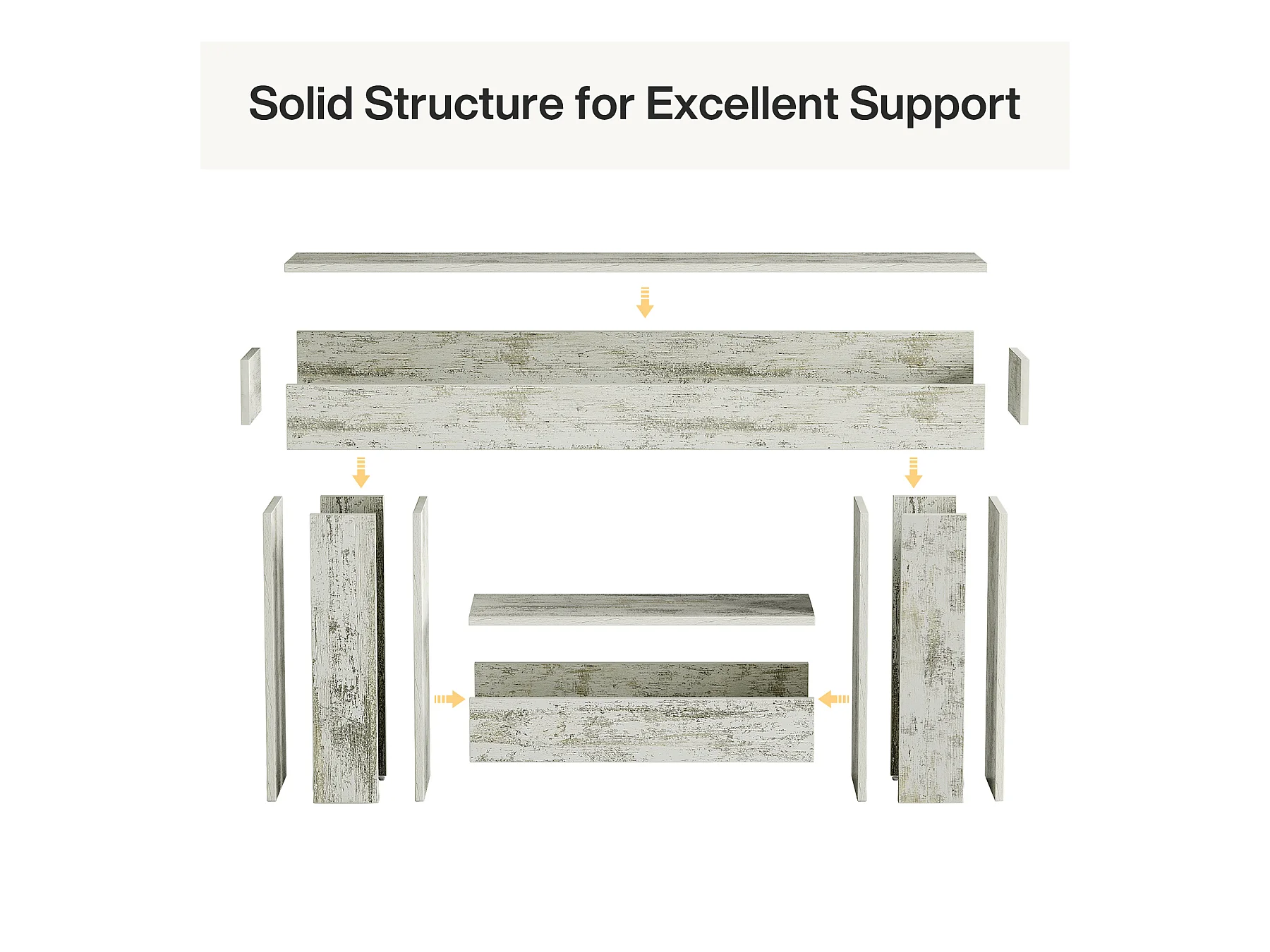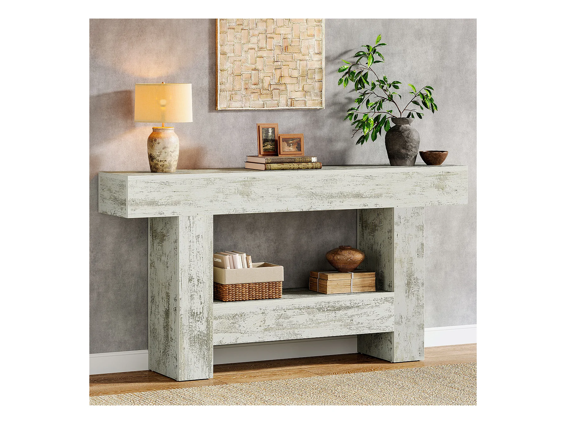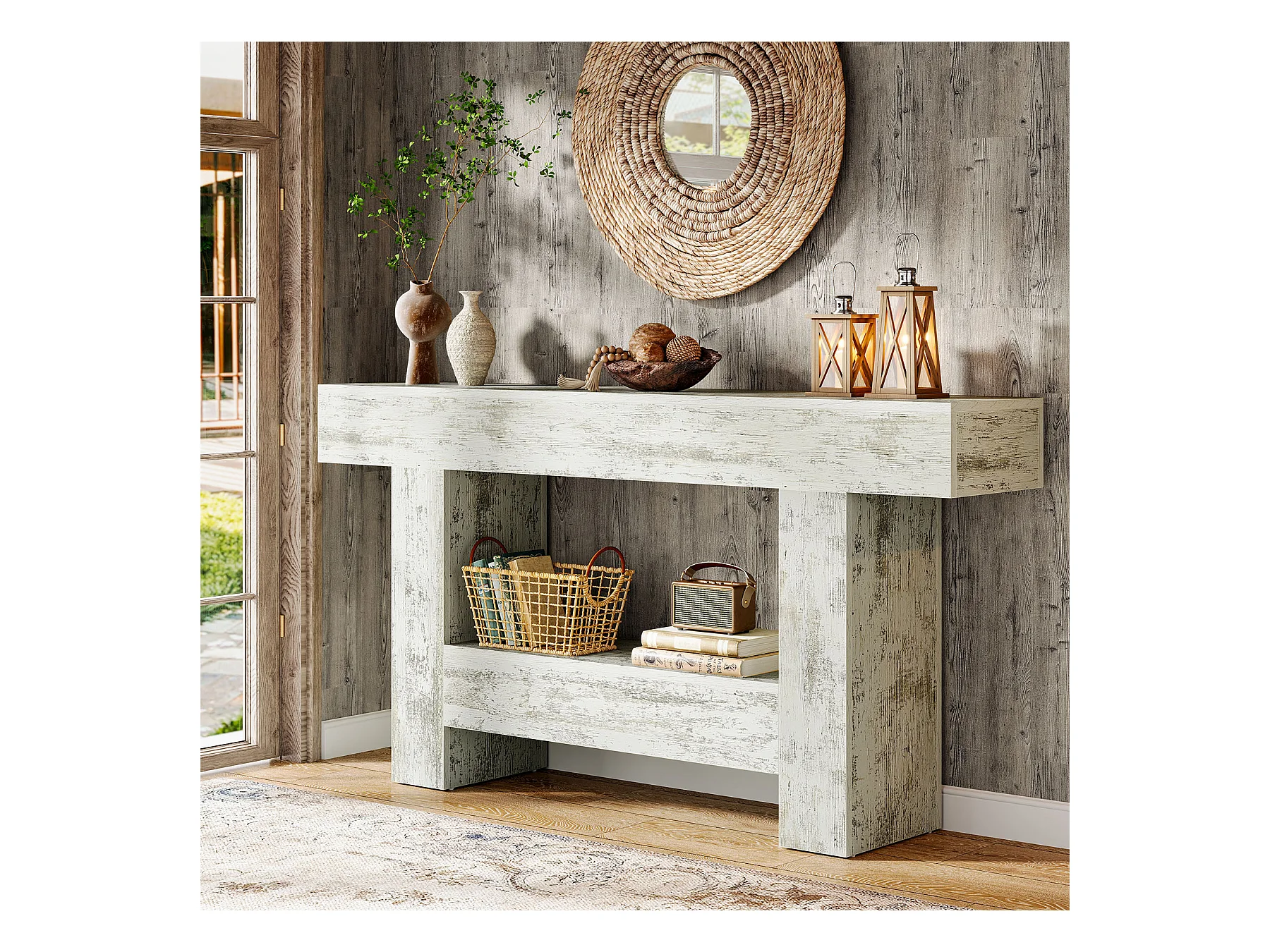 Table console de 160 cm de long, table d'entrée de ferme avec rangement