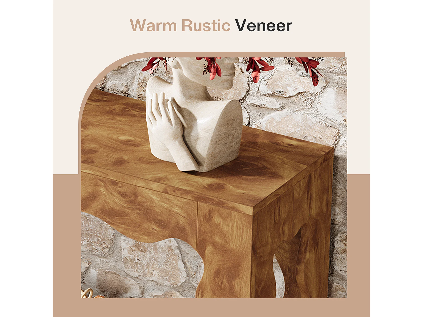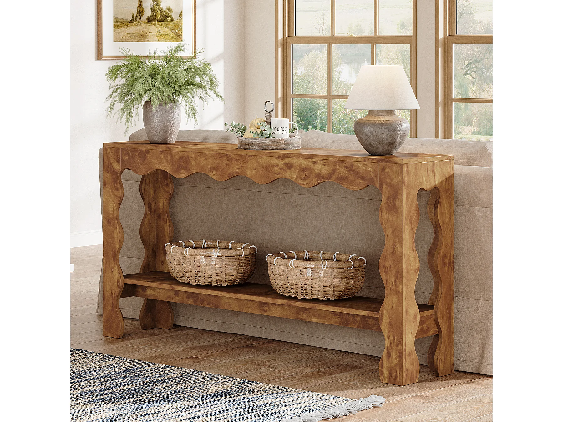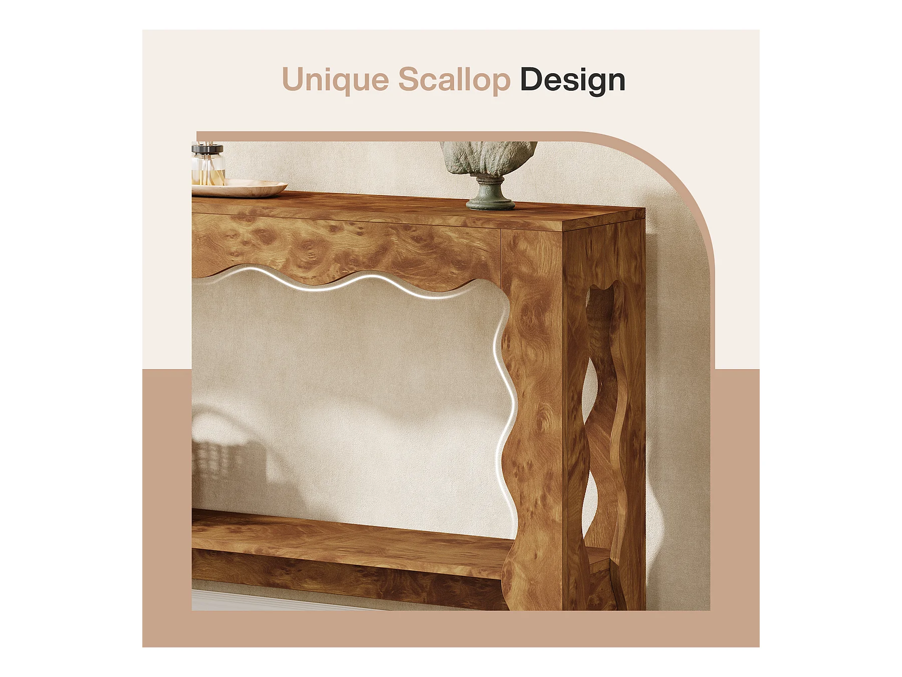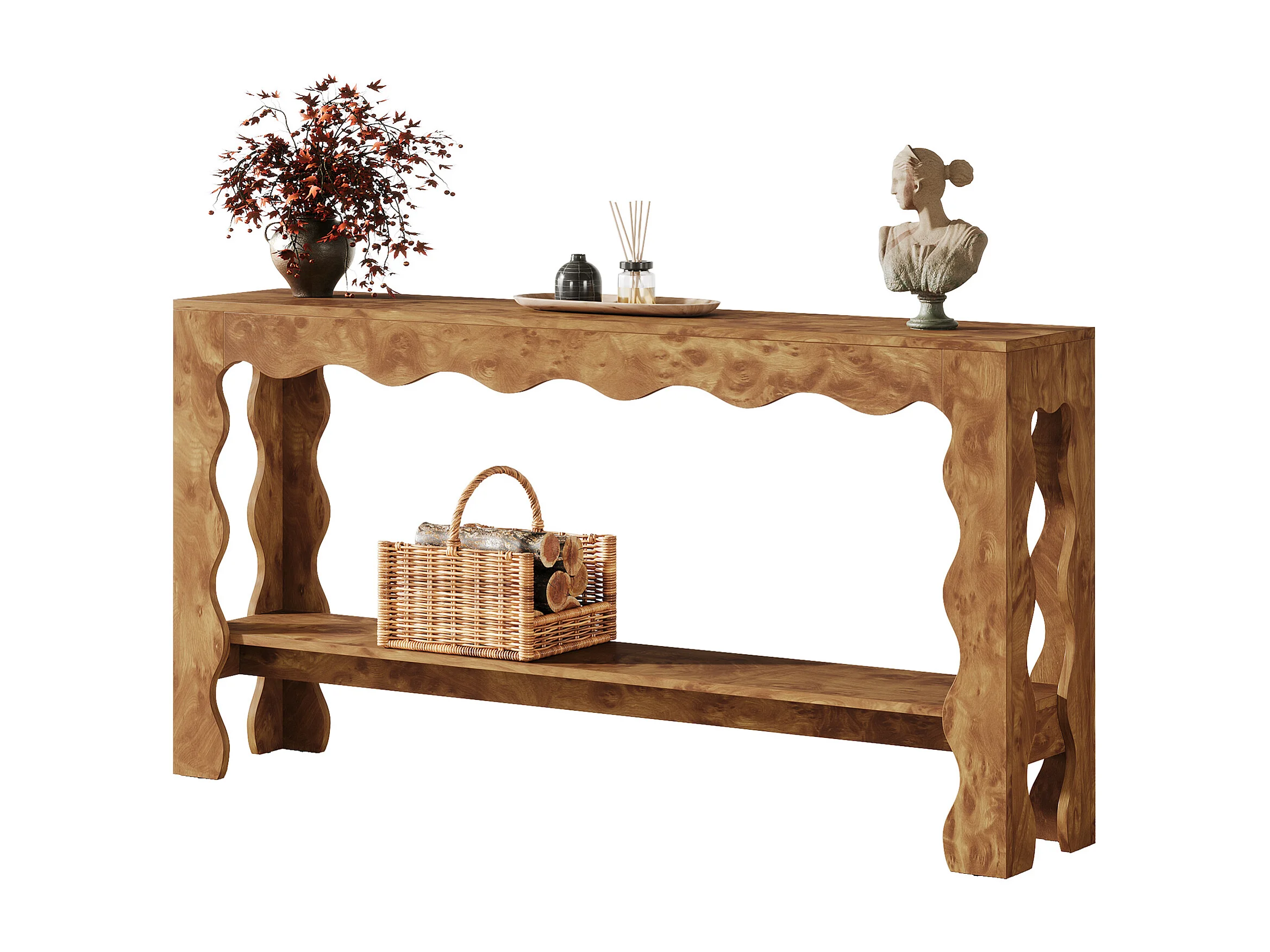 Table console de 160 cm, table d'entrée étroite à 2 niveaux avec pieds festonnés