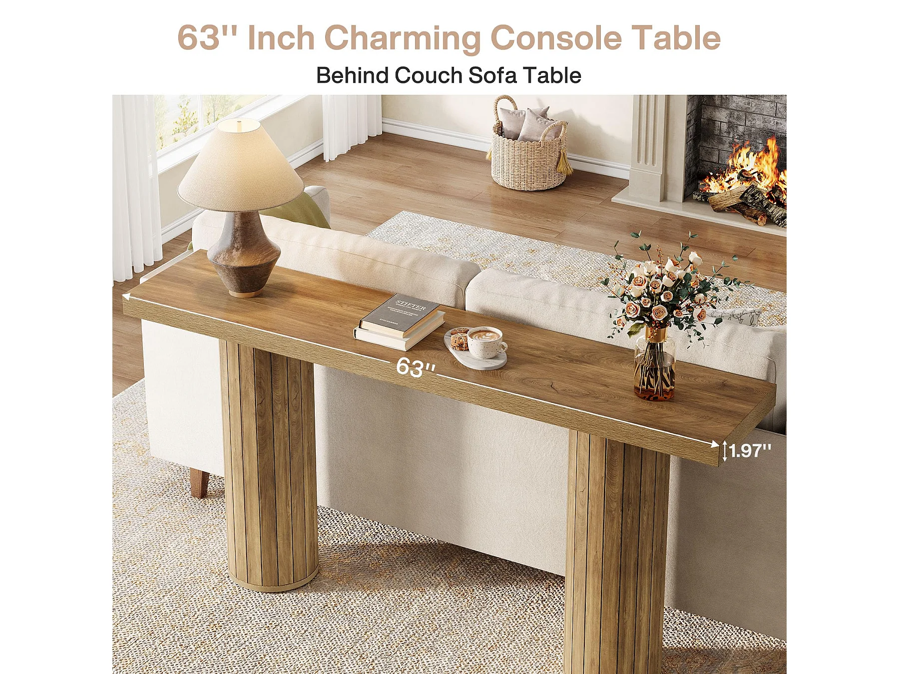 Table console de ferme de 160 cm, table de canapé derrière le canapé, longue table d'entrée, table console étroite, table de couloir pour entrée, salon, ,Marron