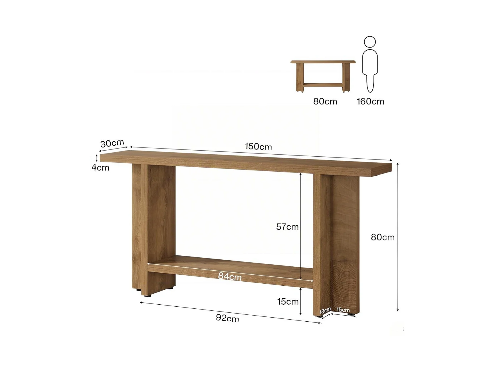 Table Console d'Entrée Étroite 150 cm - Table Derrière Canapé à 2 Niveaux - Style Maison de Campagne pour Couloir et Salon
