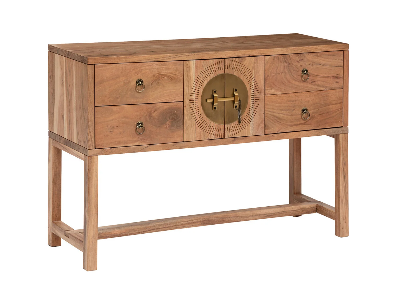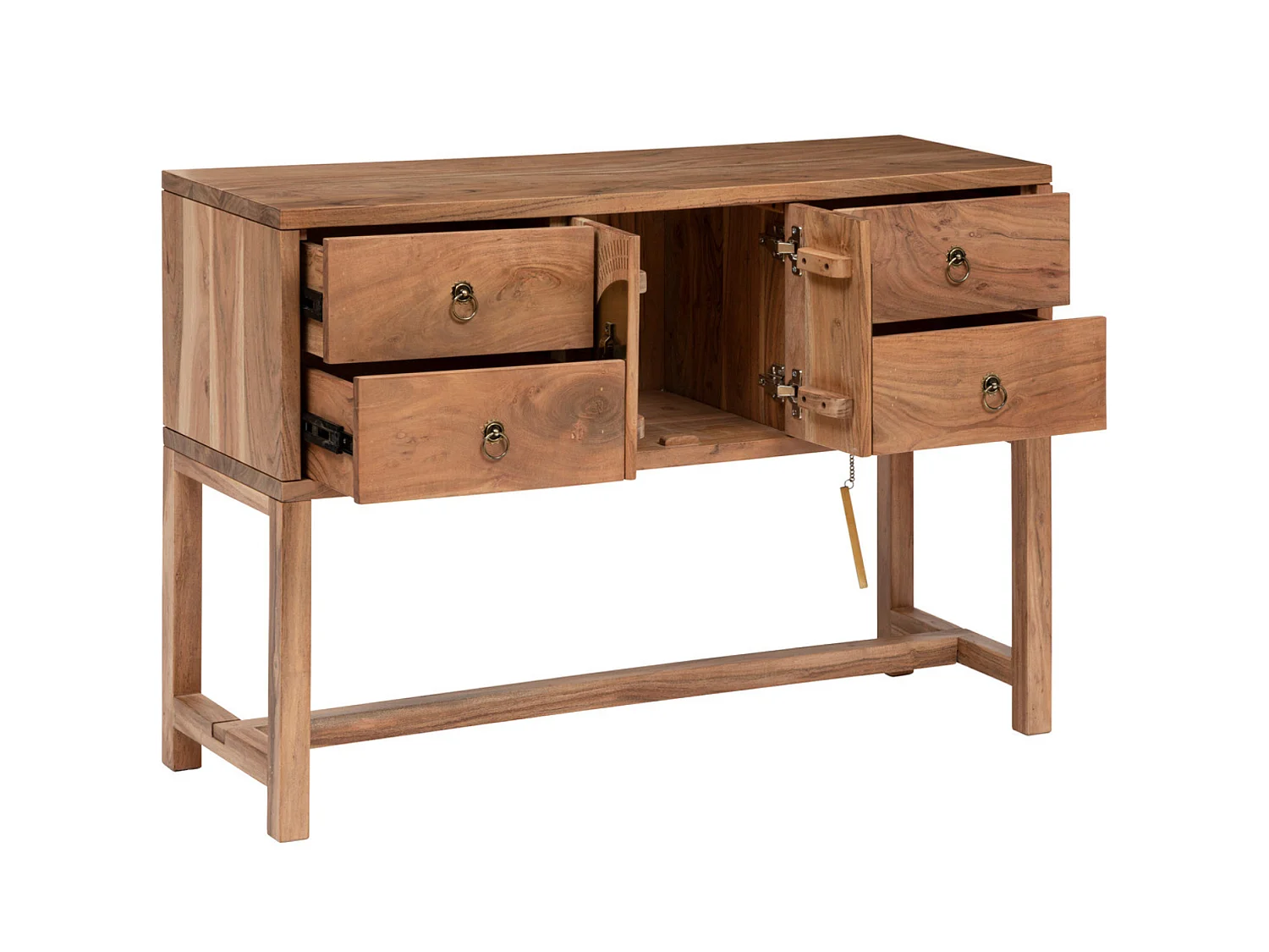 Table console en bois d'acacia coloris naturel avec 2 portes et 4 tiroirs