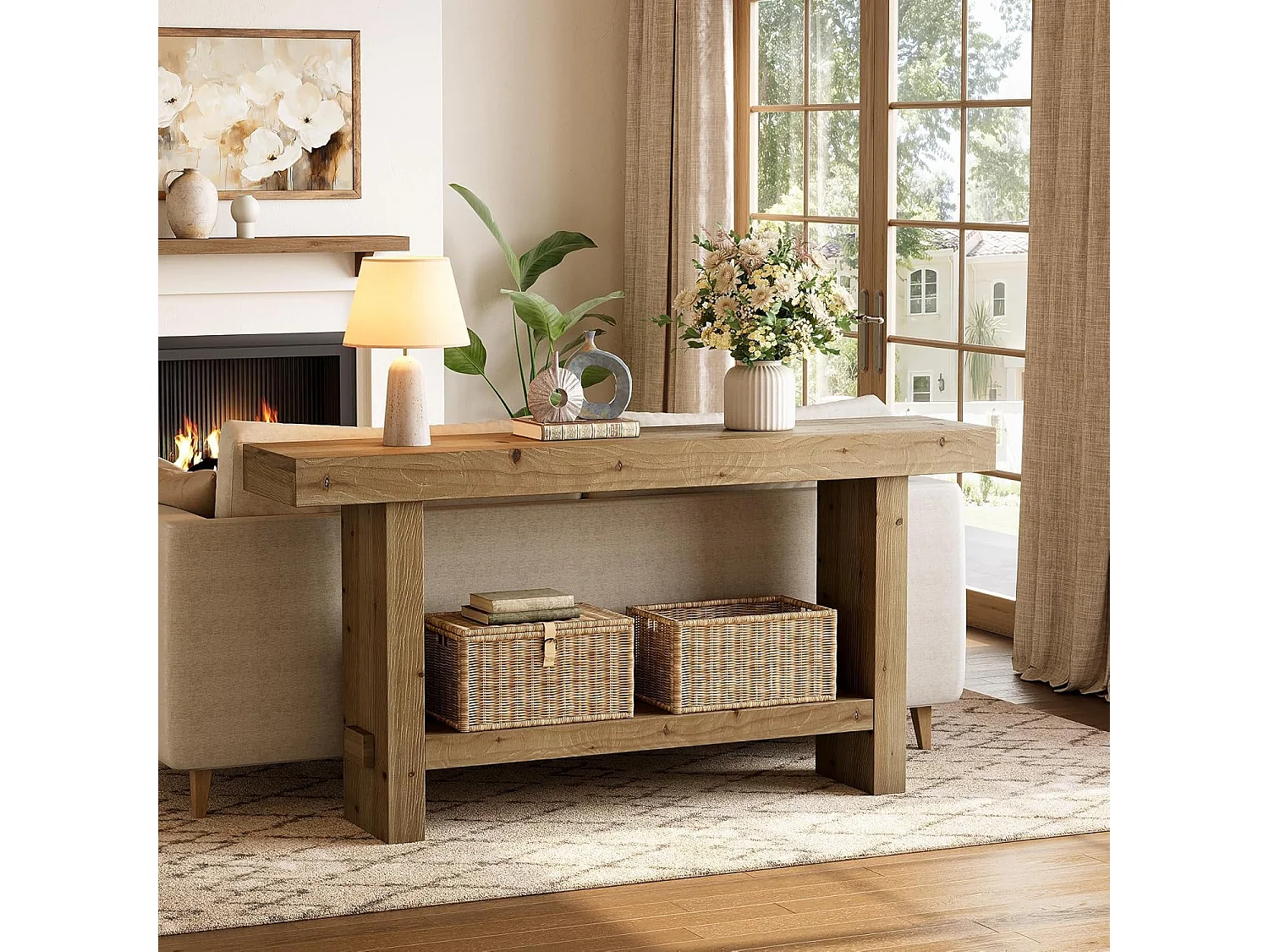 Table console en bois massif de 160 cm, table d'entrée étroite à 2 niveaux pour couloir, entrée