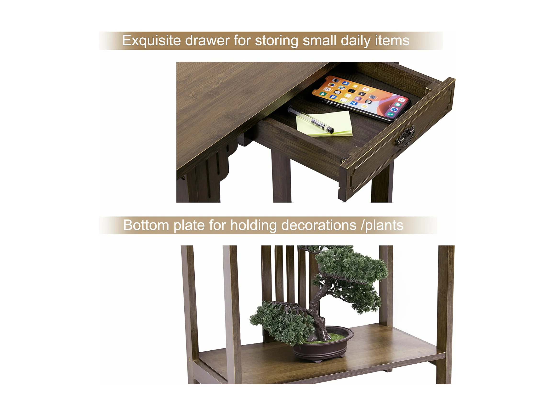 Table console en bois table d'entrée rétro avec étagère pour salon entrée couloir 81.5x31.2x82.8cm