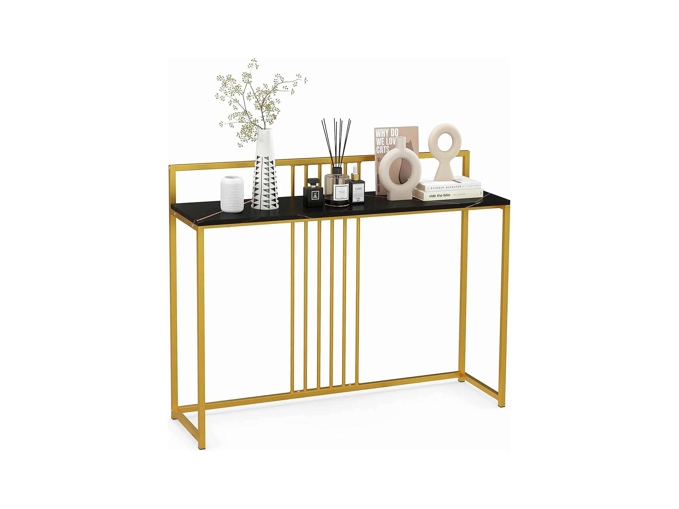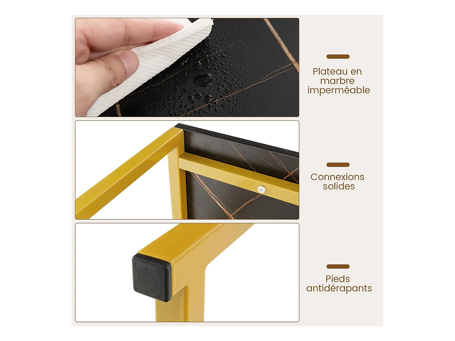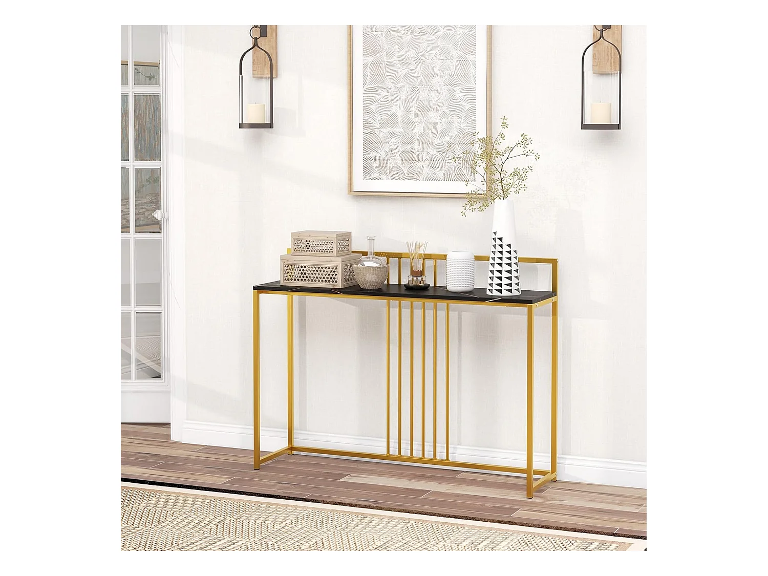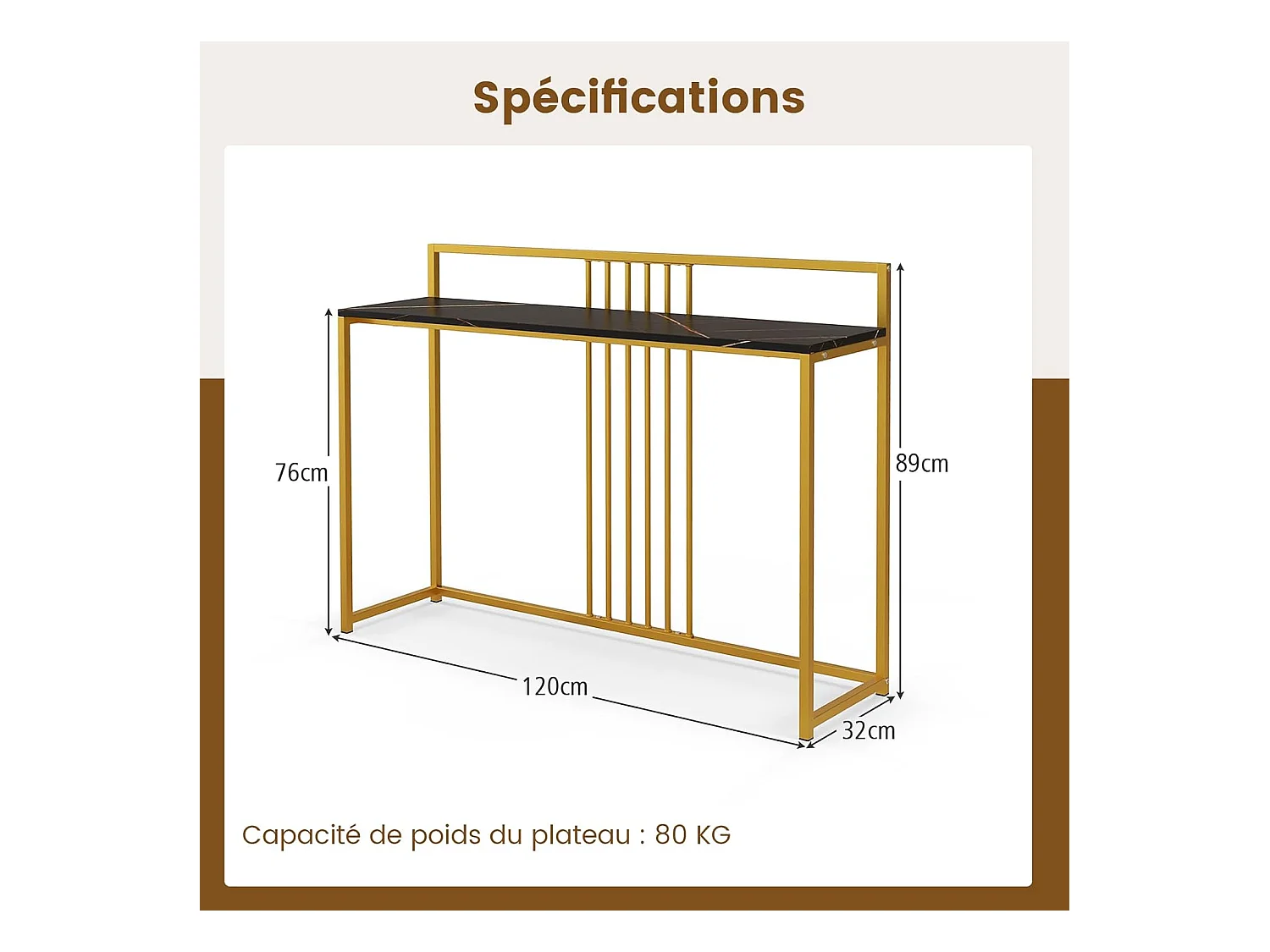 Table console, en faux marbre, design géométrique moderne 120 x 32 x 89 cm (noir)