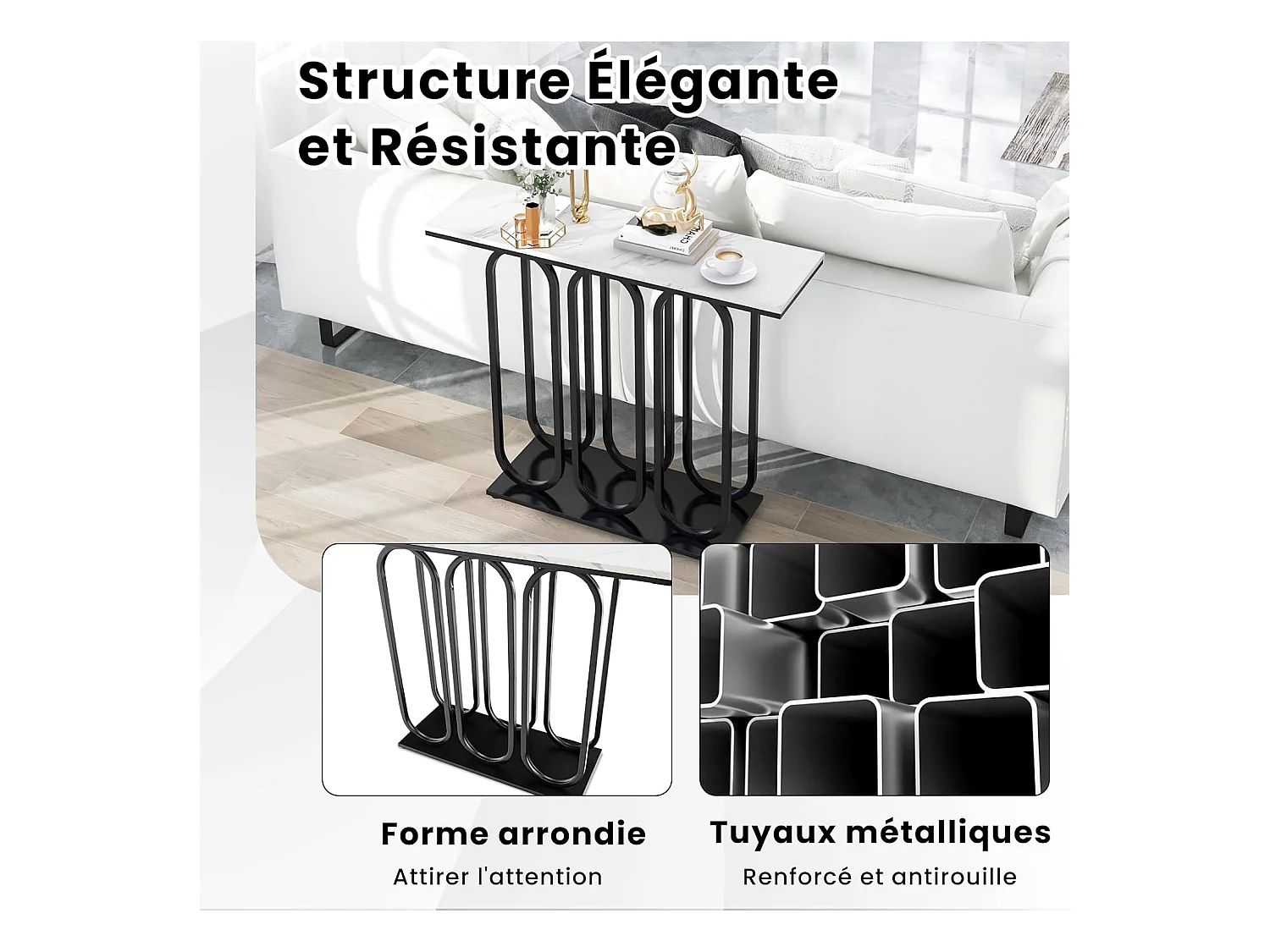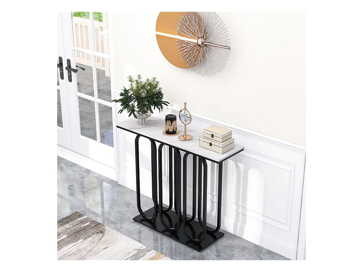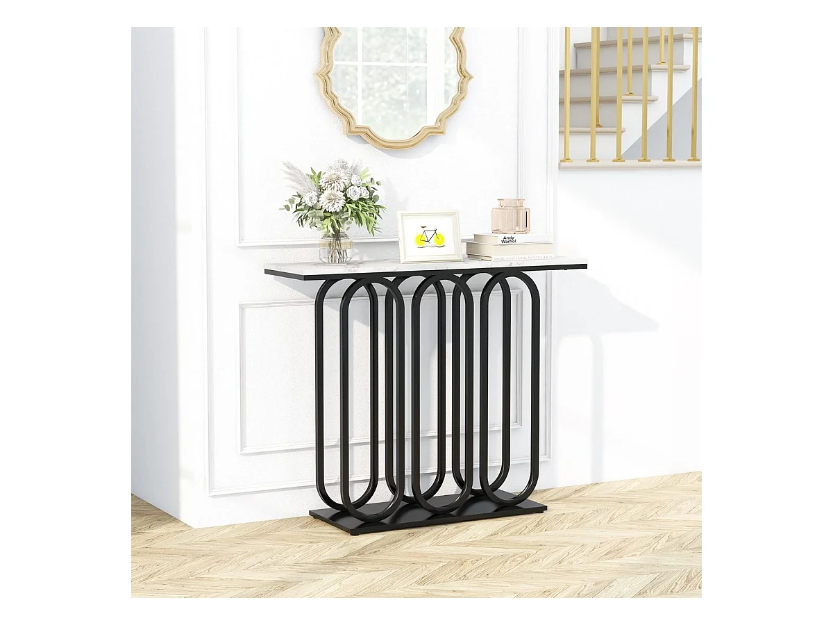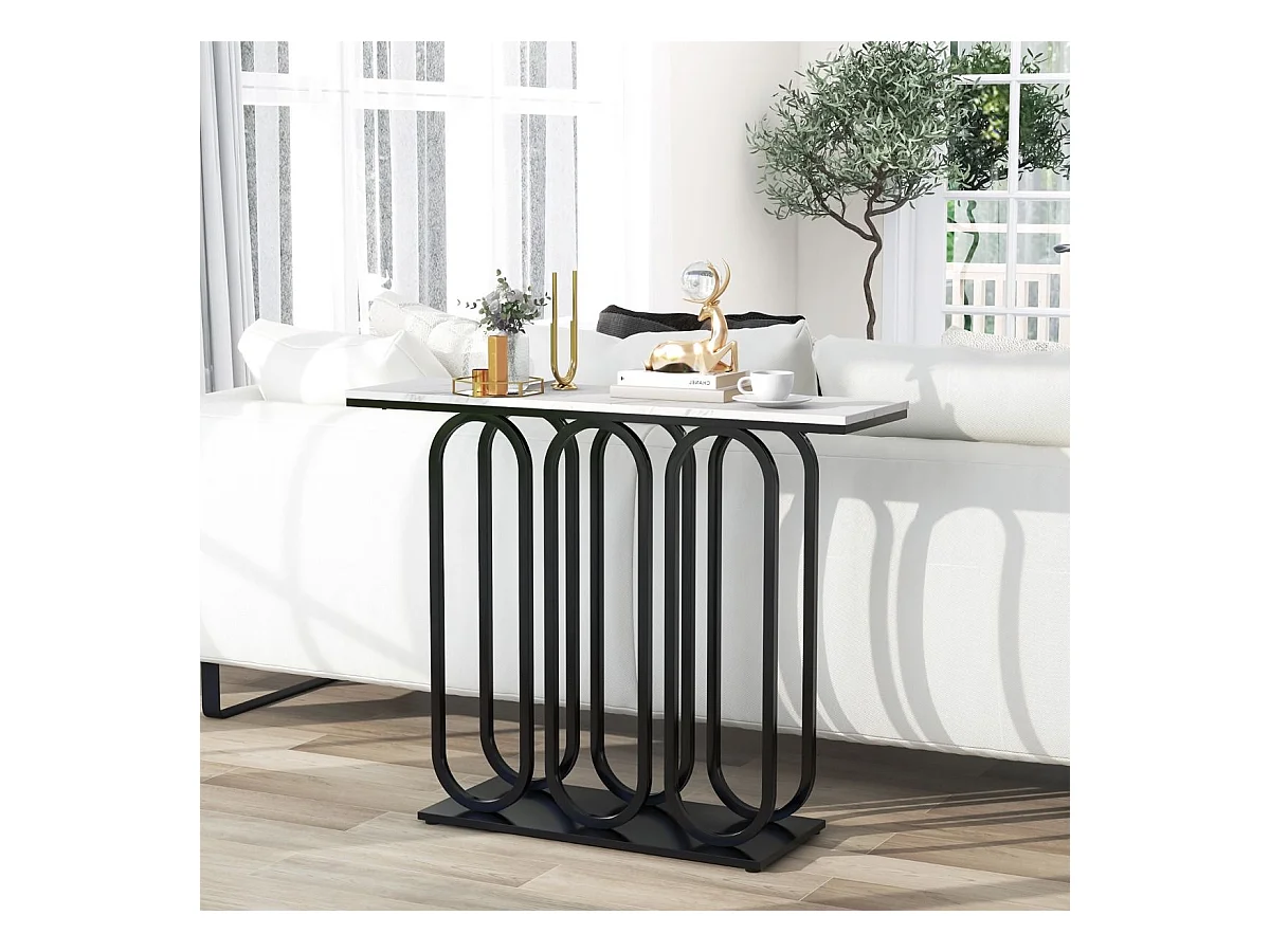 Table console, en faux marbre, design ovale moderne, cadre en métal noir 100 x 30 x 80 cm