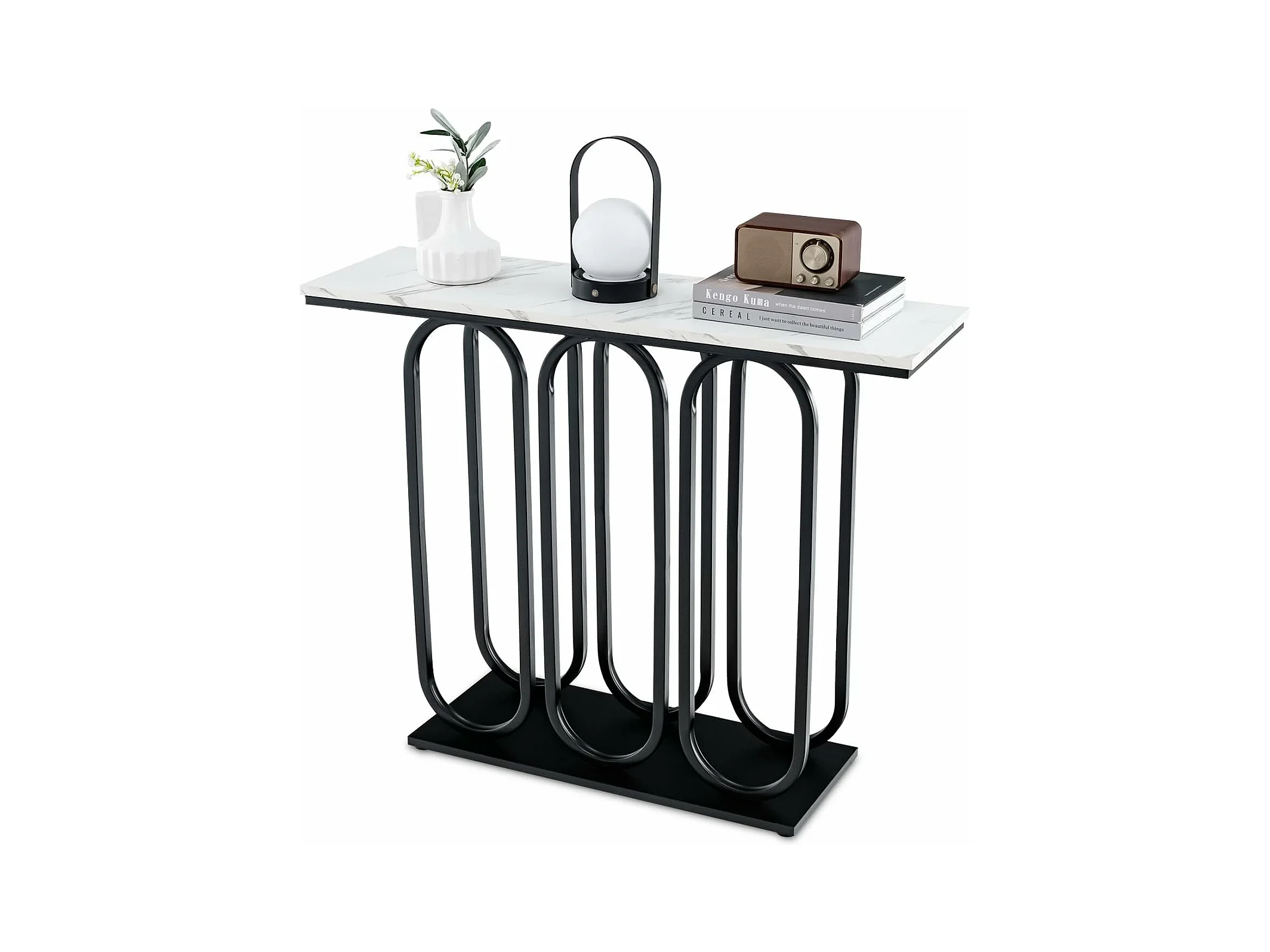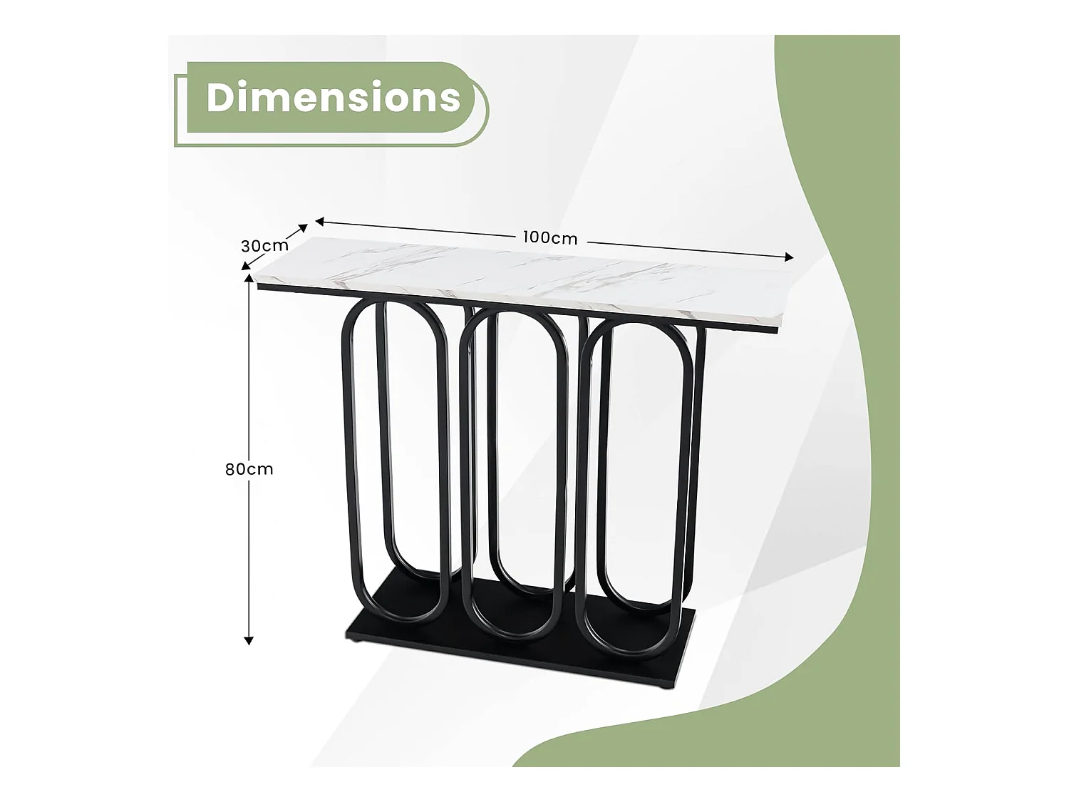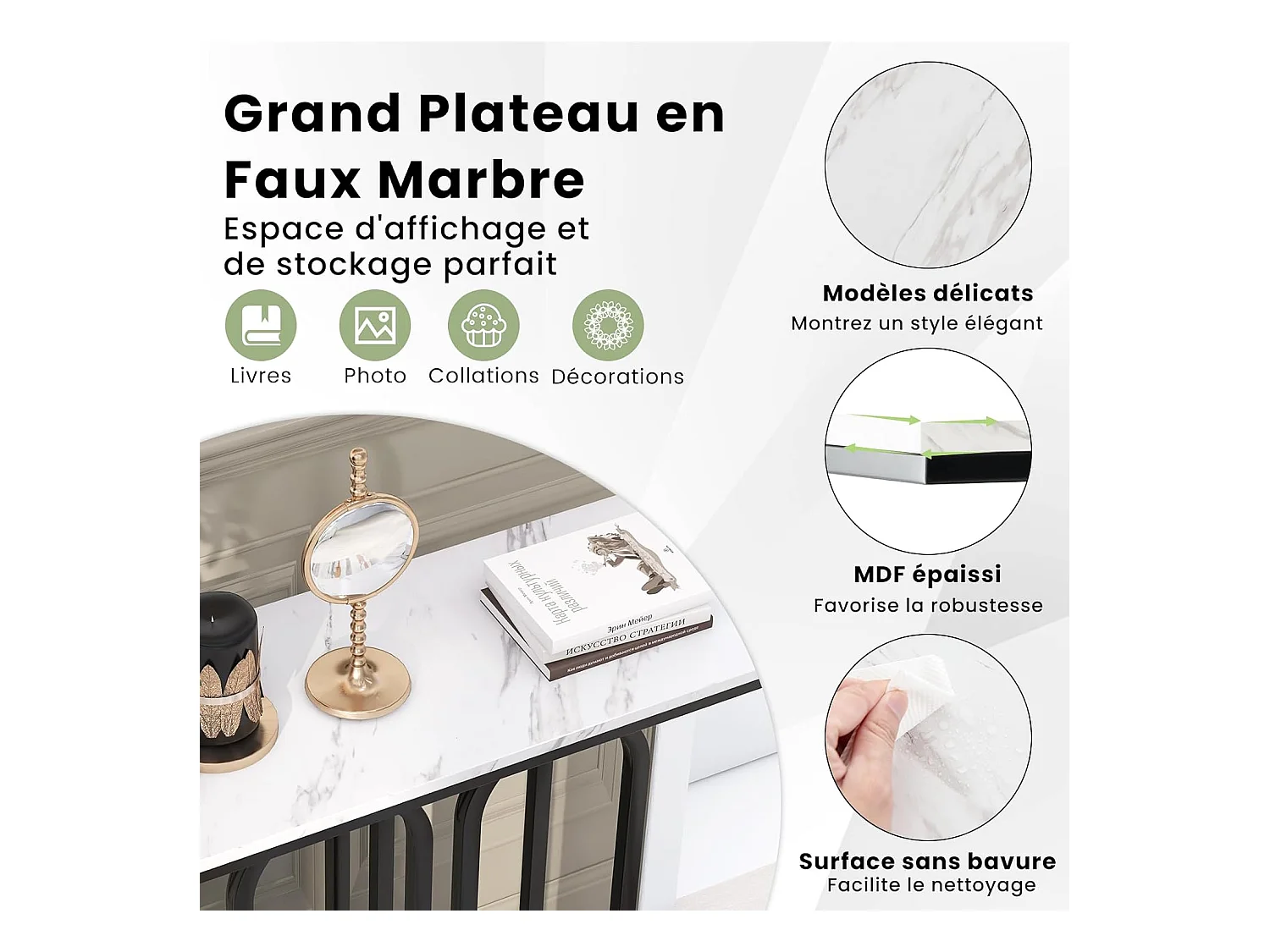 Table console, en faux marbre, design ovale moderne, cadre en métal noir 100 x 30 x 80 cm