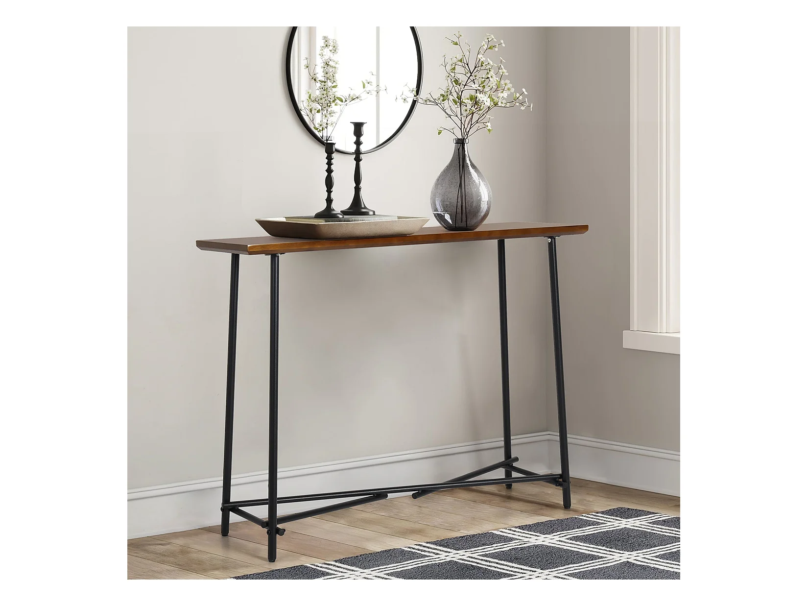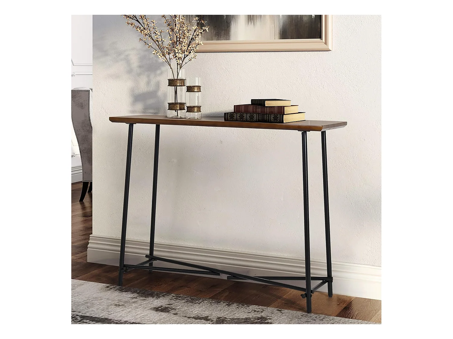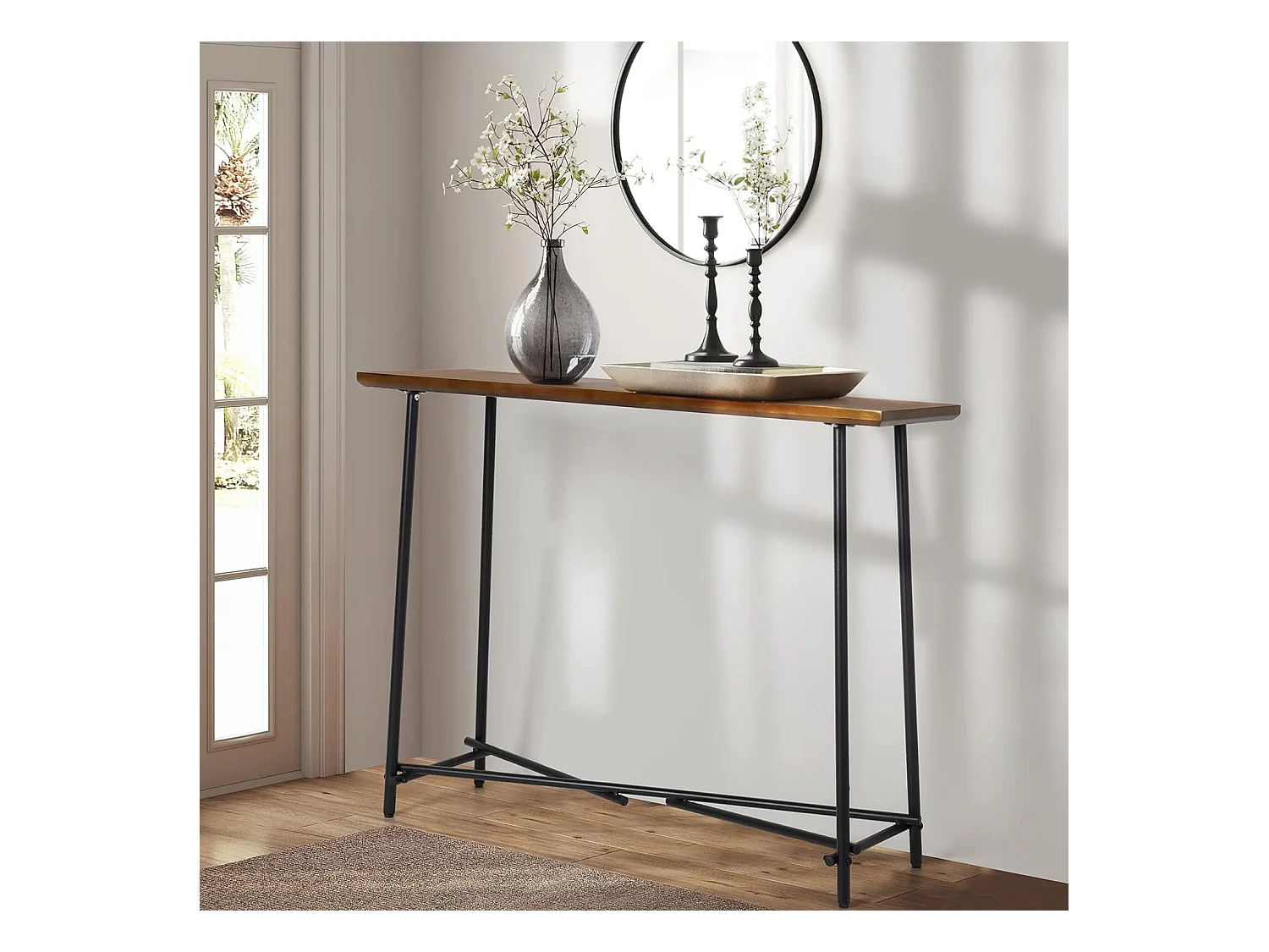 Table console entrée en bois et métal pour salon bureau chambre 100x30x76cm