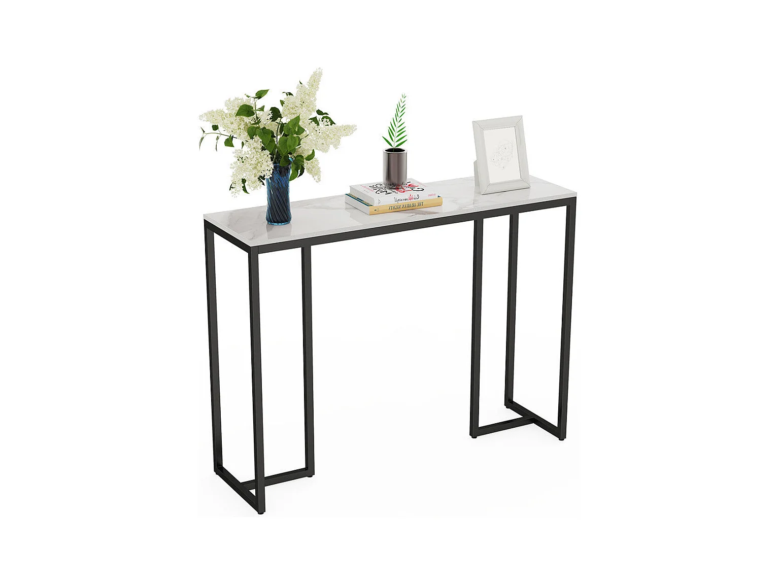 Table console entree en marbre blanche cadre en fer pour salon, entrée, couloir 100x30x78.5cm