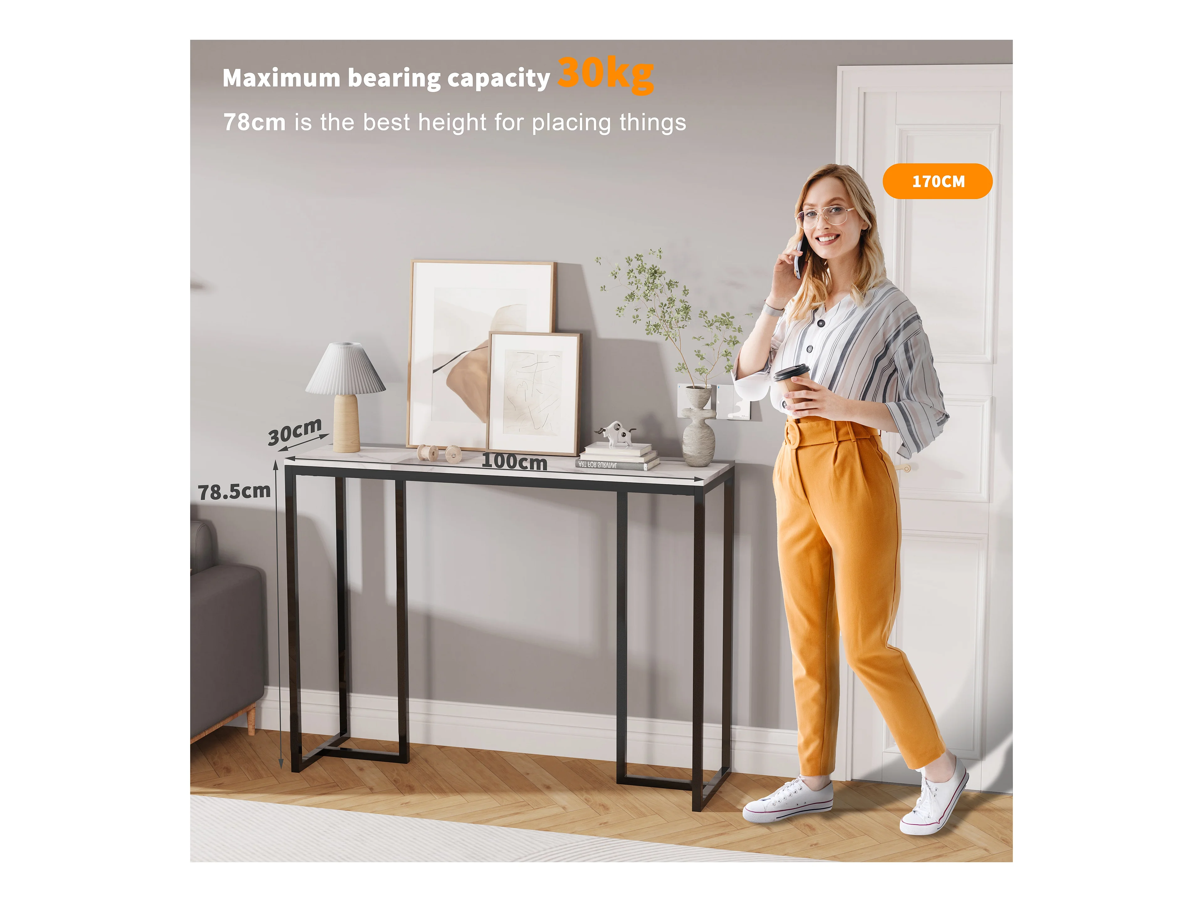 Table console entree en marbre scandinave pour salon entrée couloir 100x30x78.5cm