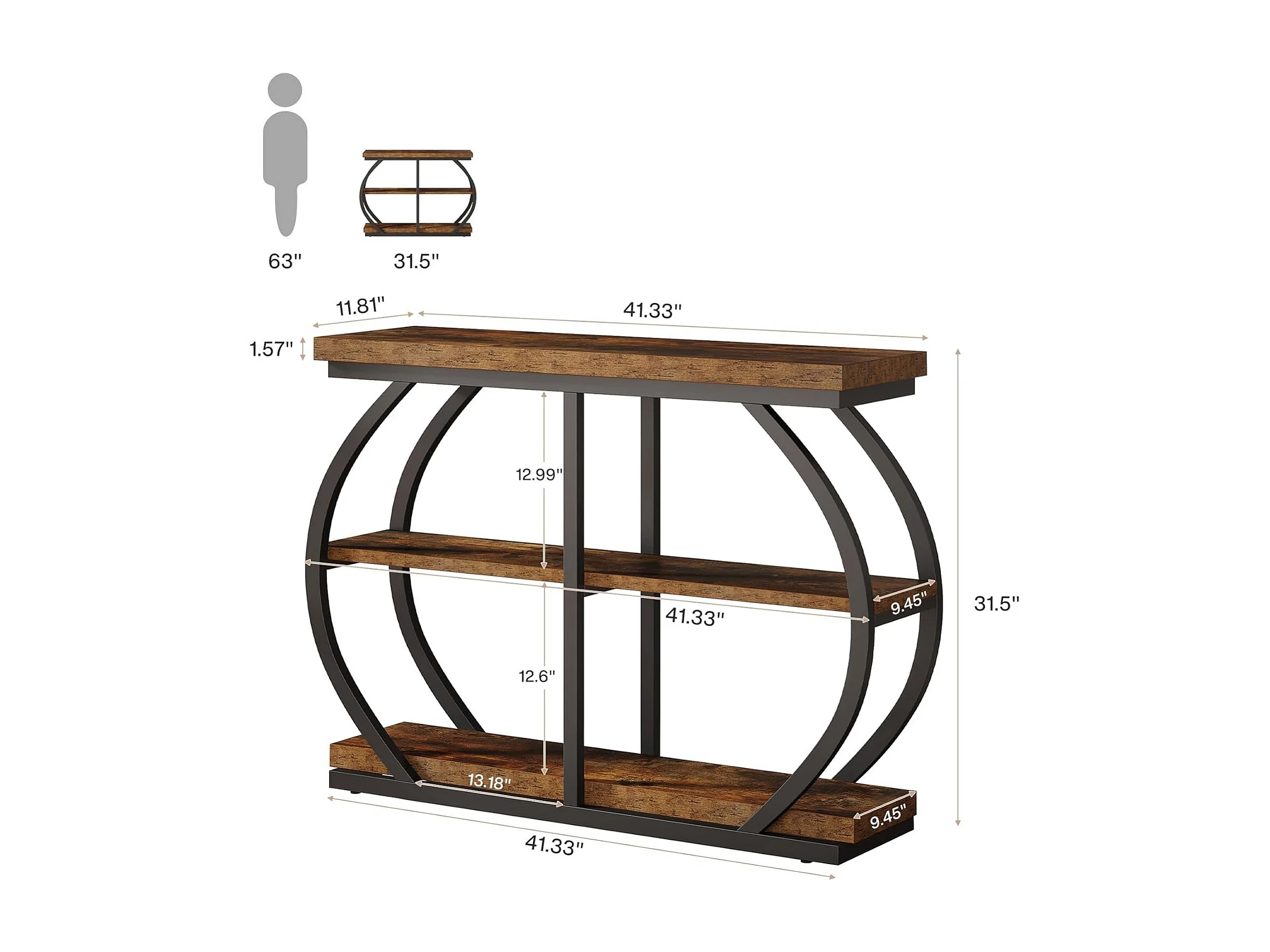 Table console étroite à 3 niveaux ,105 cm ,Table d'appoint avec 4 étagères cubiques ,Pour salon, couloir, entrée, Marron rustique