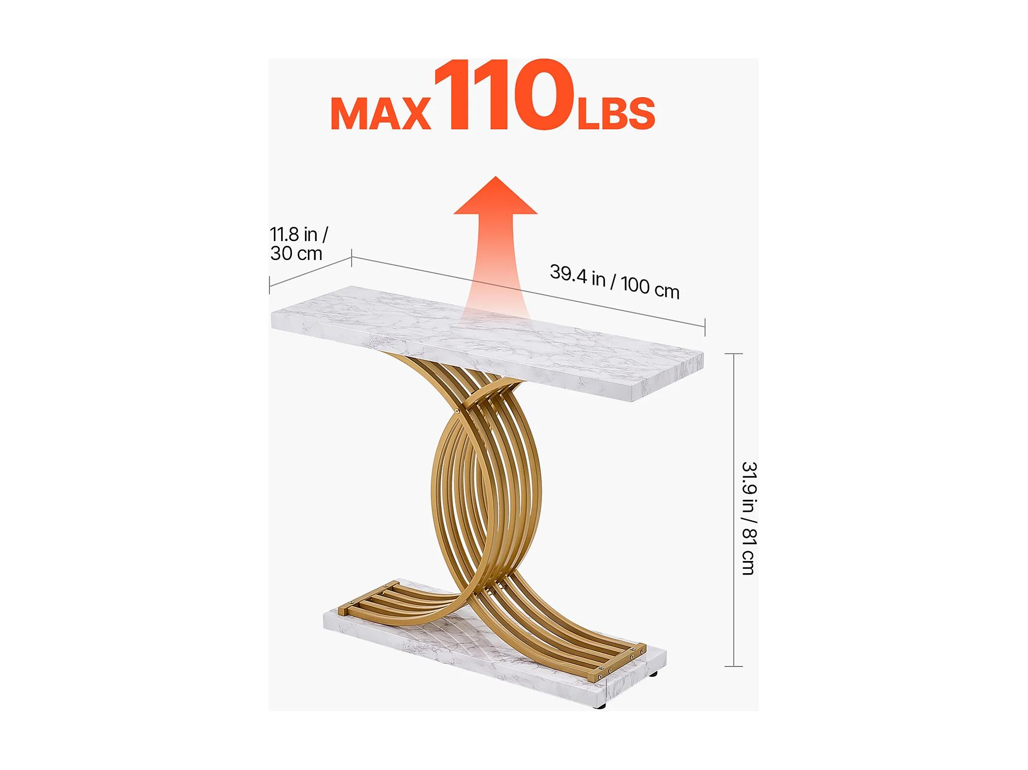 Table console étroite canapé 100x30x81 cm, 1 niveau, cadre métal, pour couloir, salon, chambre.
