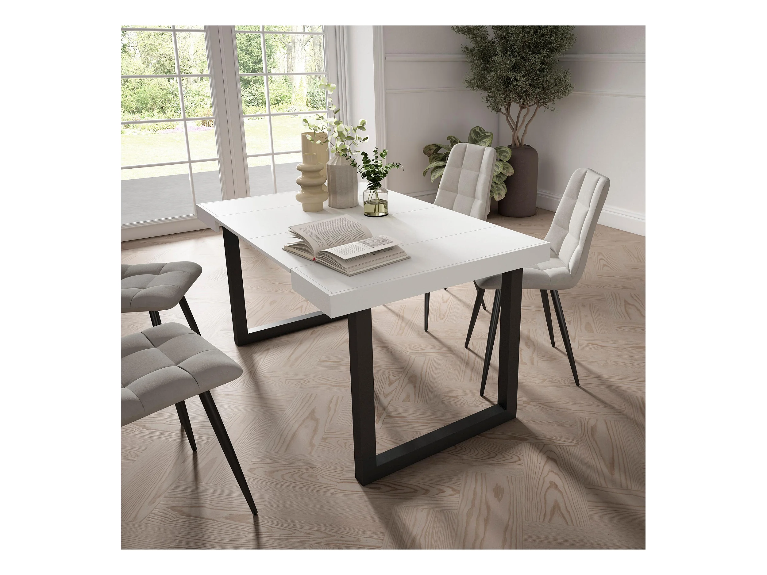 Table console extensible, 140x90x73cm, Pour 6 personnes, Pieds bois massif, Blanc