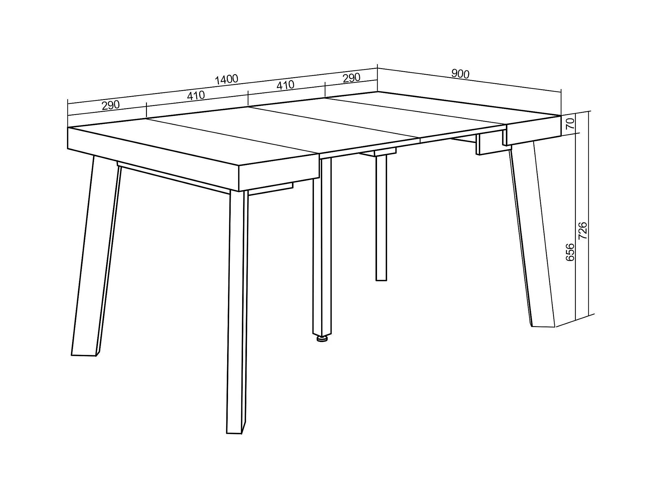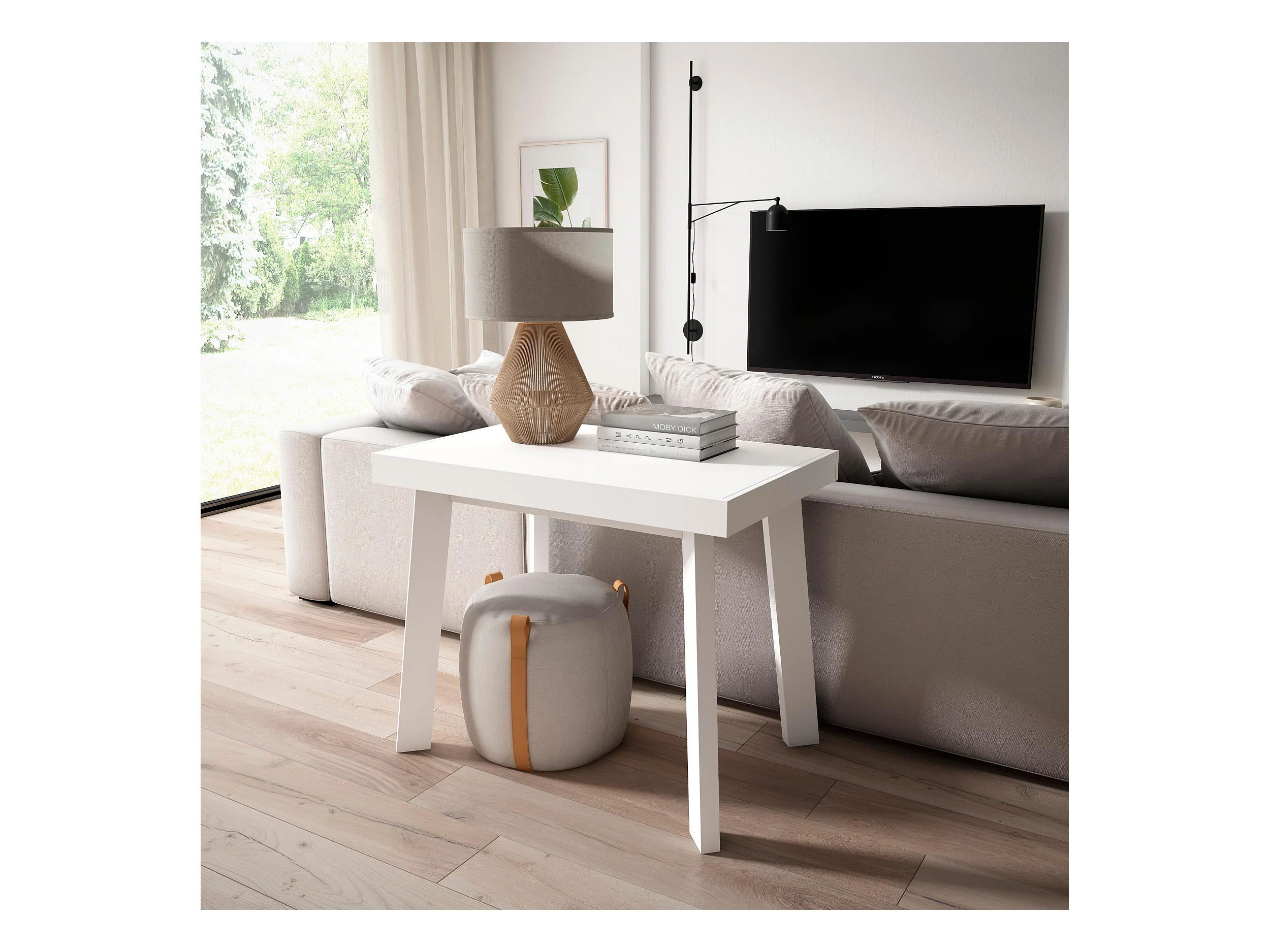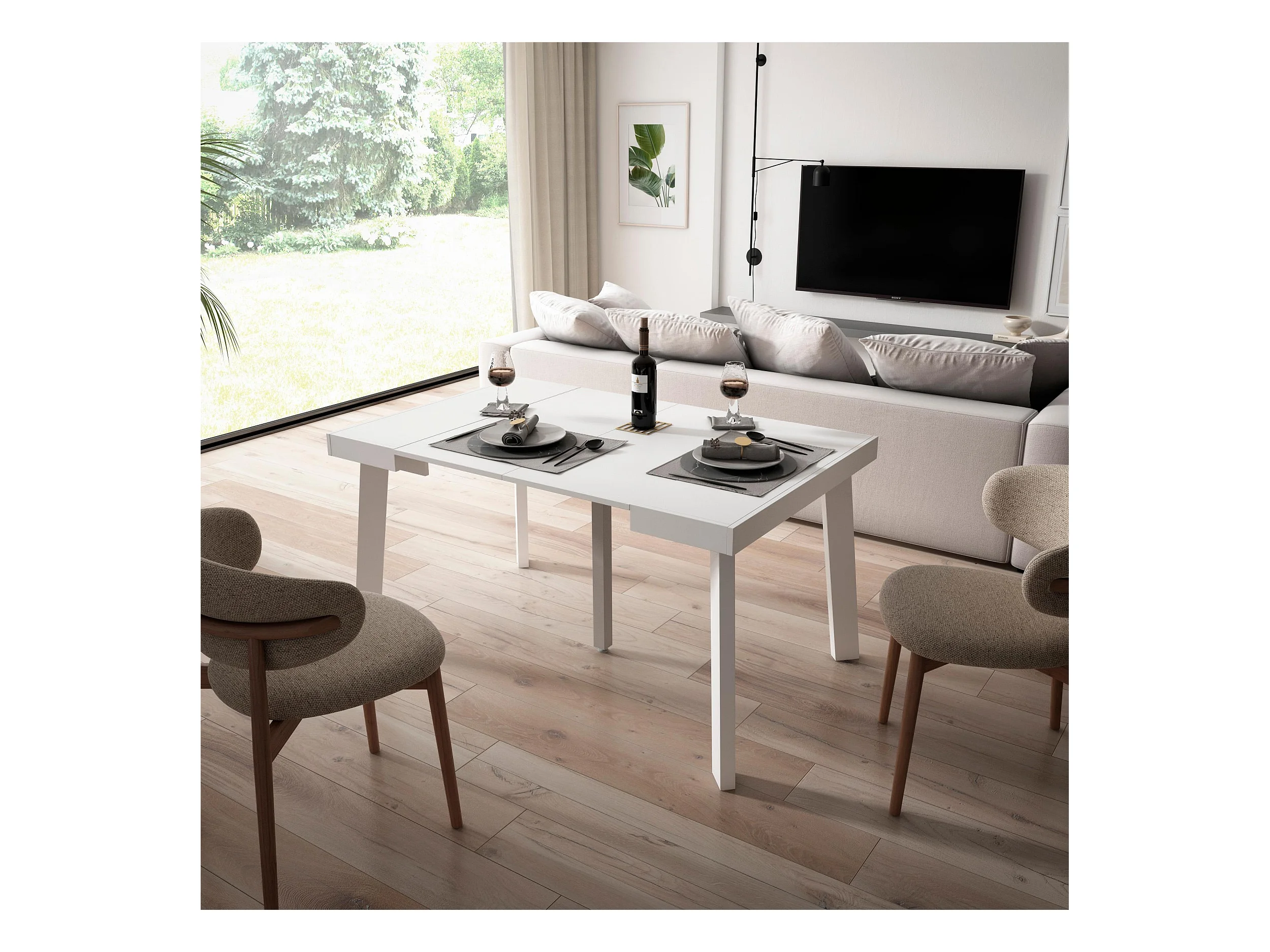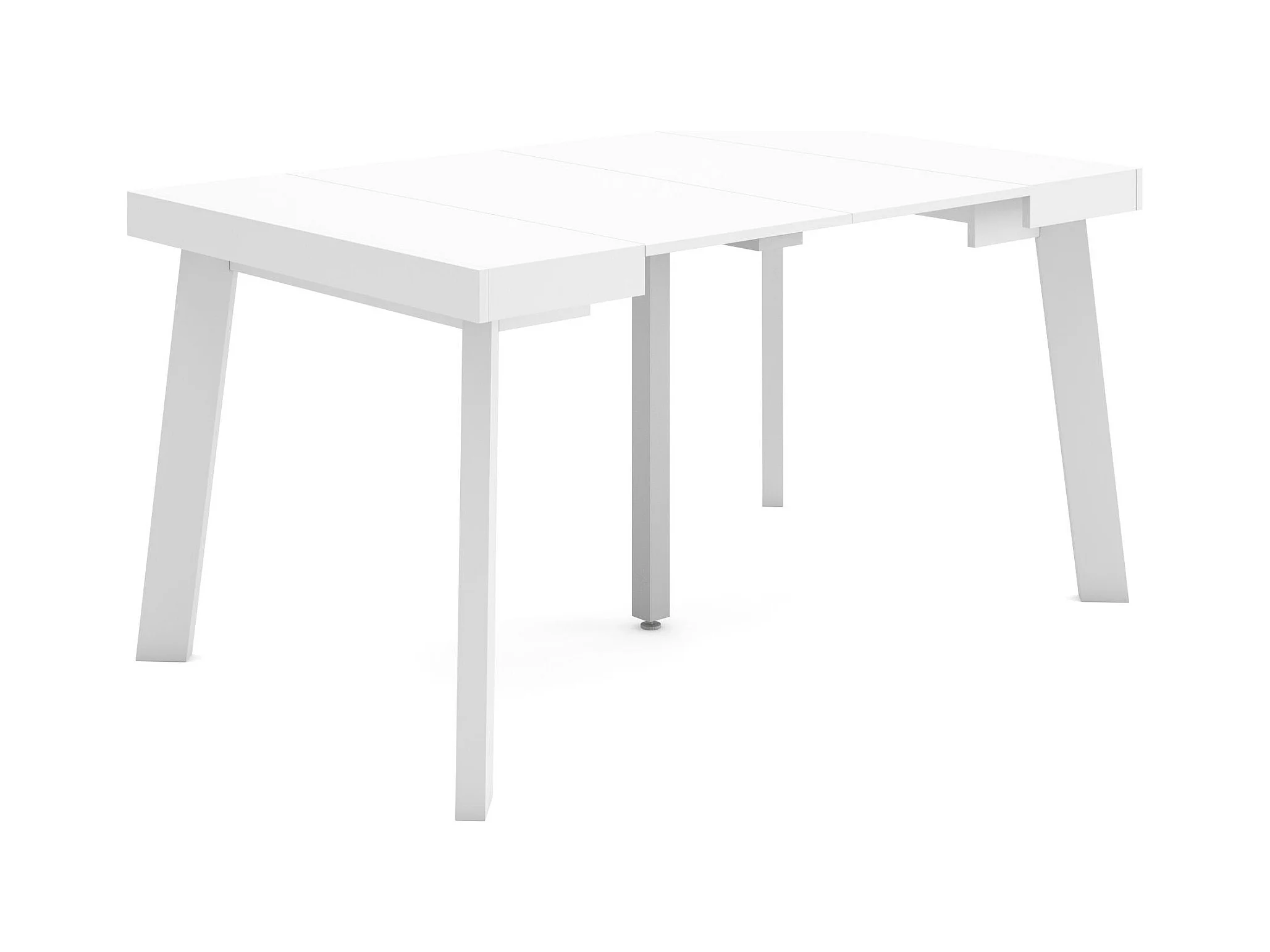 Table console extensible, 140x90x73cm, Pour 6 personnes, Pieds en bois, Blanc
