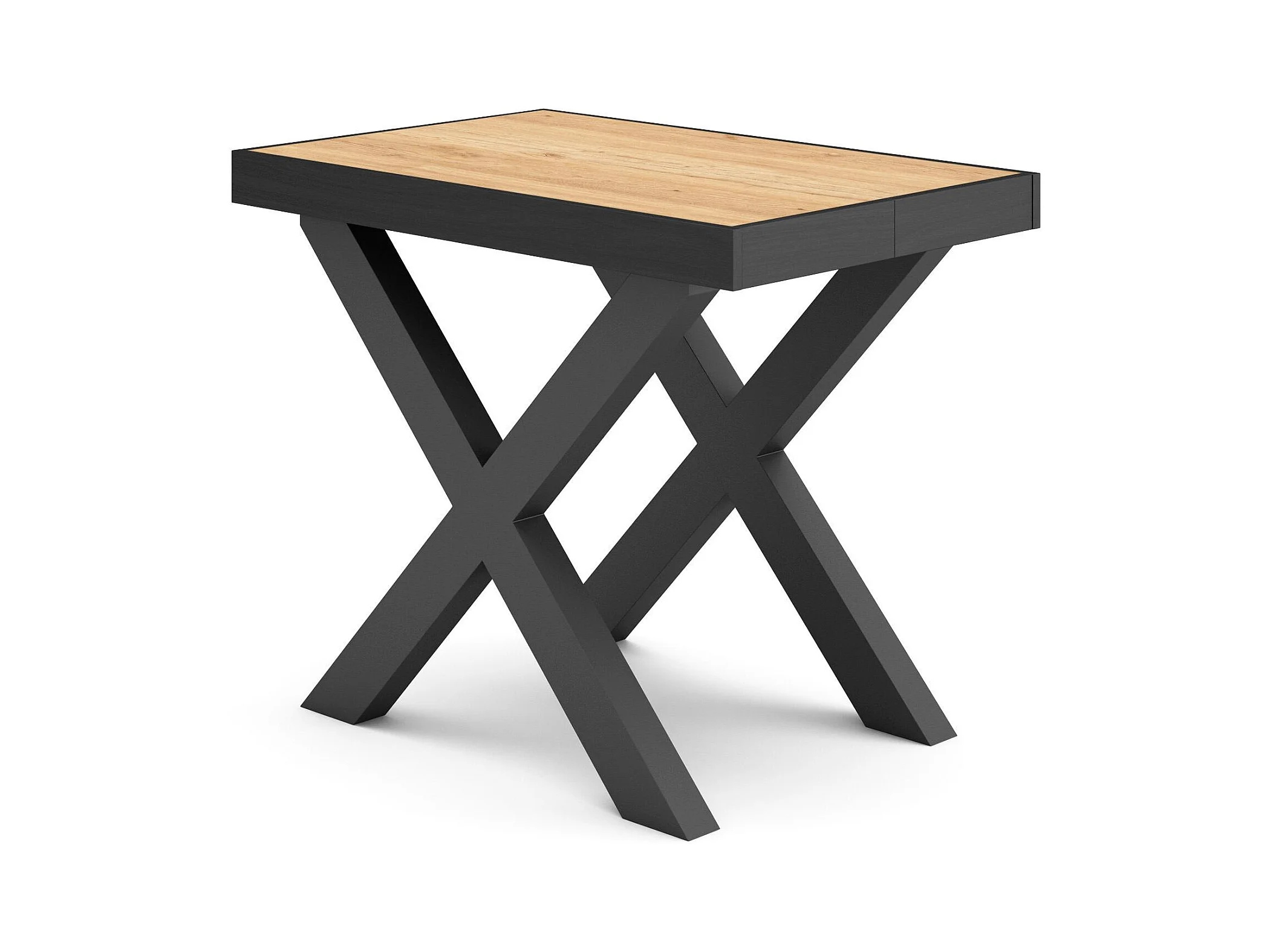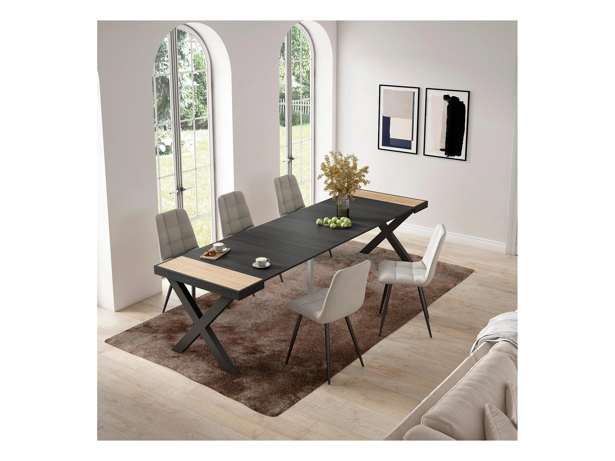 Table console extensible, 302x90x73cm, Pour 14 personnes, Pieds bois massif, Chêne et noir