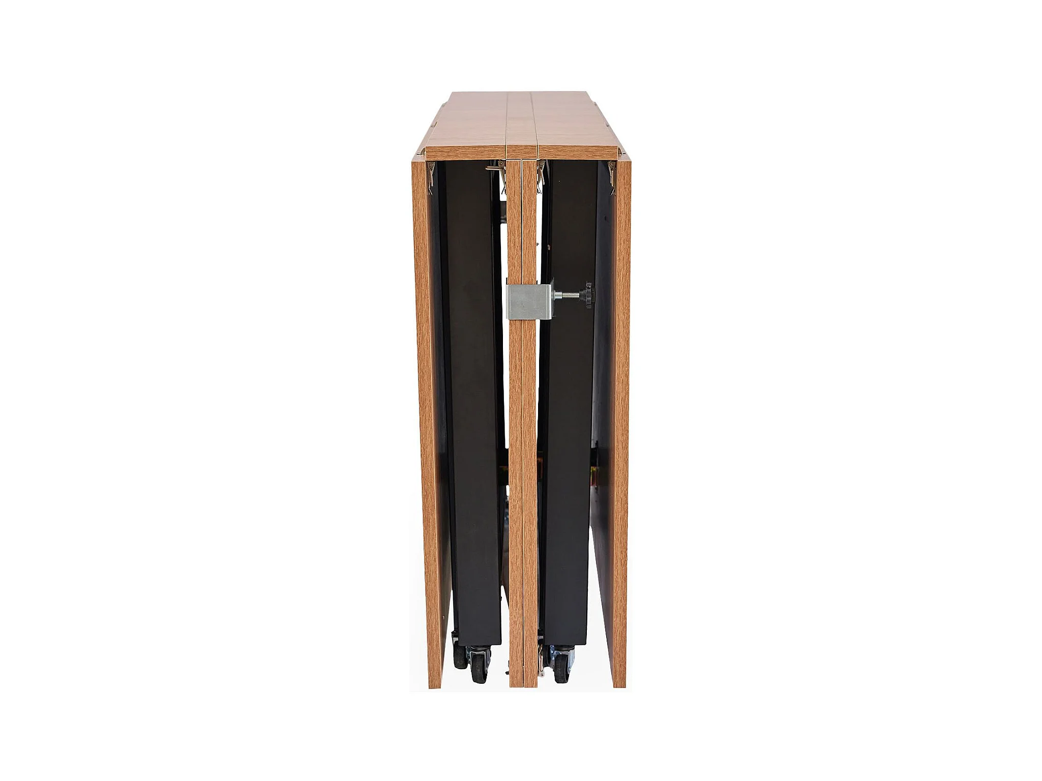 Console extensible bois et acier anthracite Elvira 90x40-196 ou 90x40-300-Couleur Naturel-Pied et support sur roulettes-5 rallonges