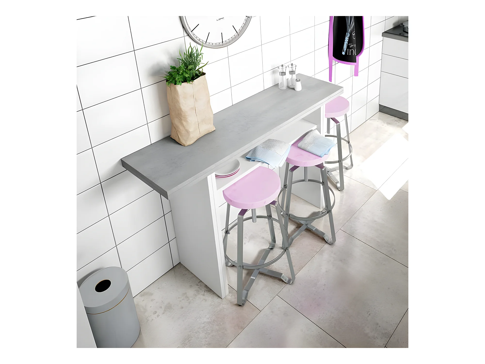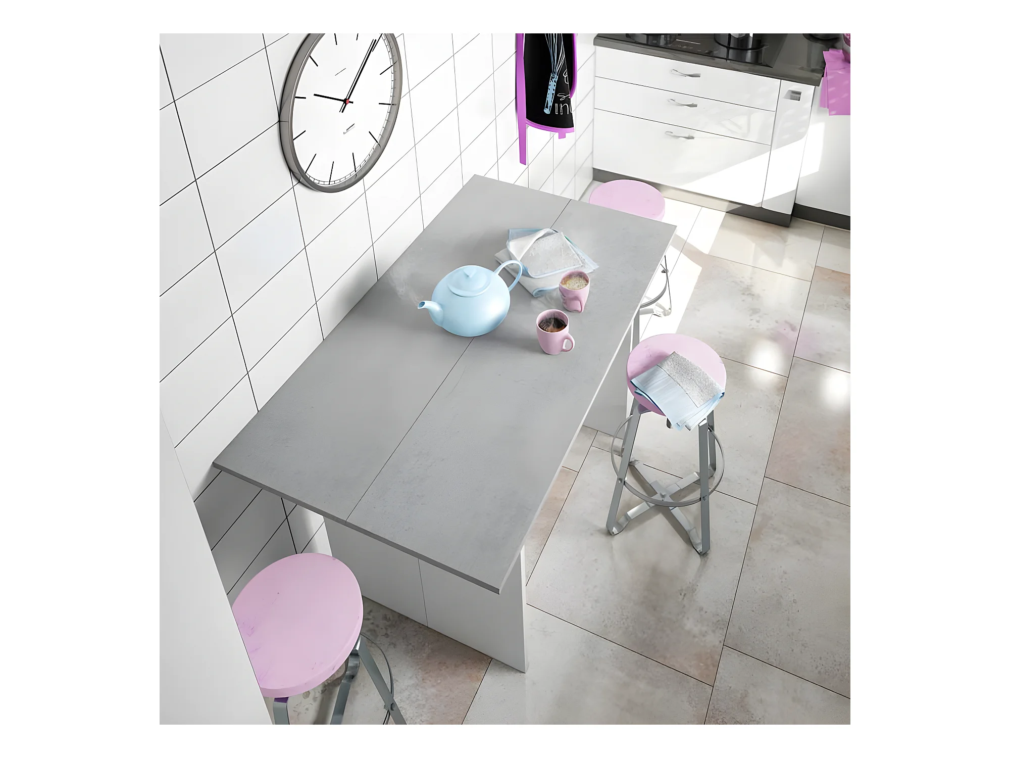 Table console extensible Blanc/Béton - TAVALA - L 120 x l 35/70 x H 77