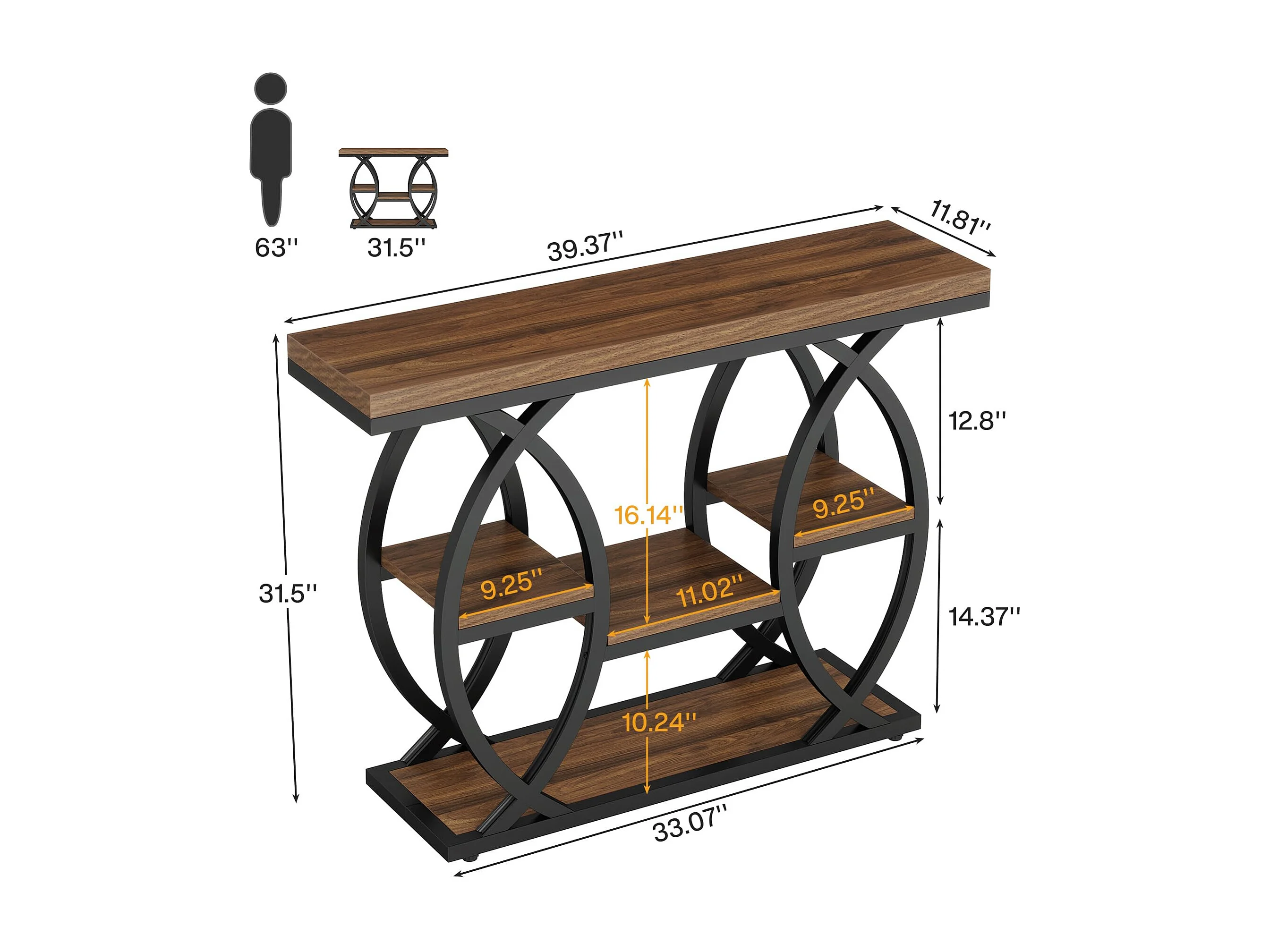 Table Console Industrielle à 4 Niveaux avec étagères de Rangement, 100 cm Table d'appoint étroite en Bois avec Cadre en métal pour Petits espaces, Couloir, Foyer