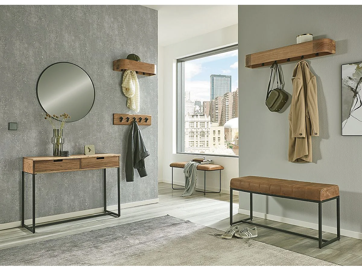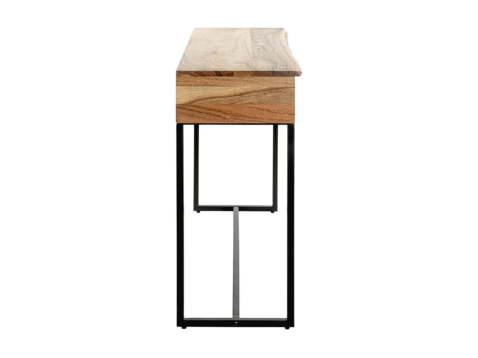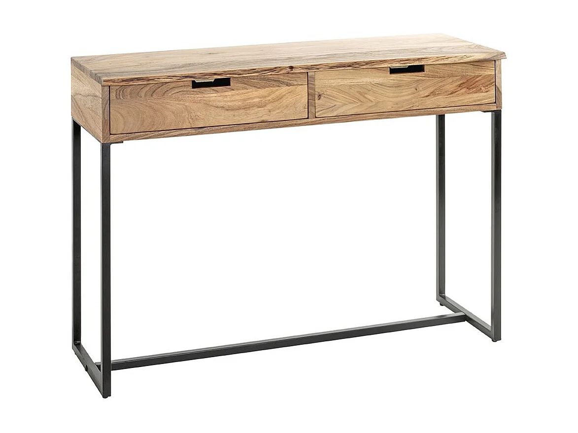 Table console meuble d'entrée 2 tiroirs coloris chêne et métal noir - Longueur 100 x Hauteur 75 x Profondeur 35cm