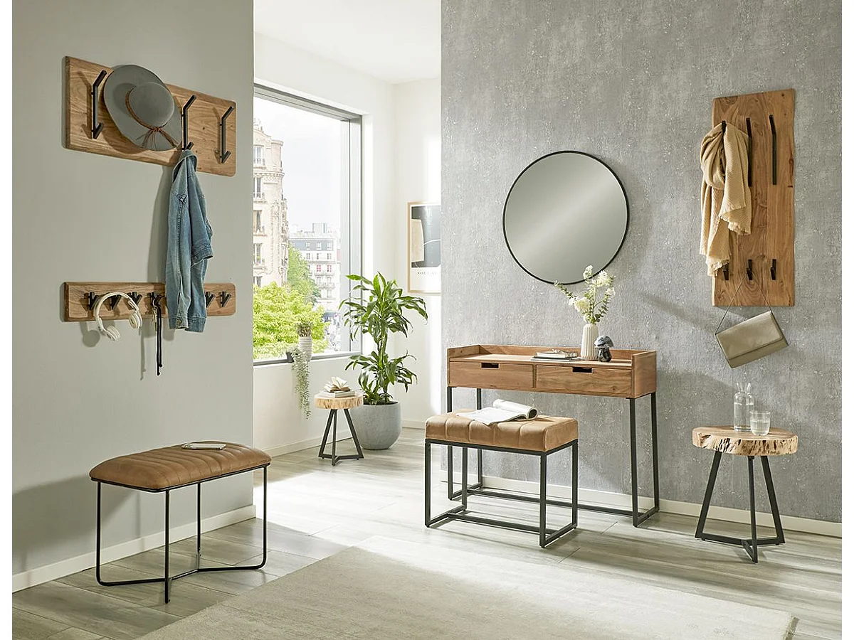 Table console meuble d'entrée 2 tiroirs coloris chêne et métal noir - Longueur 100 x Hauteur 80 x Profondeur 35cm