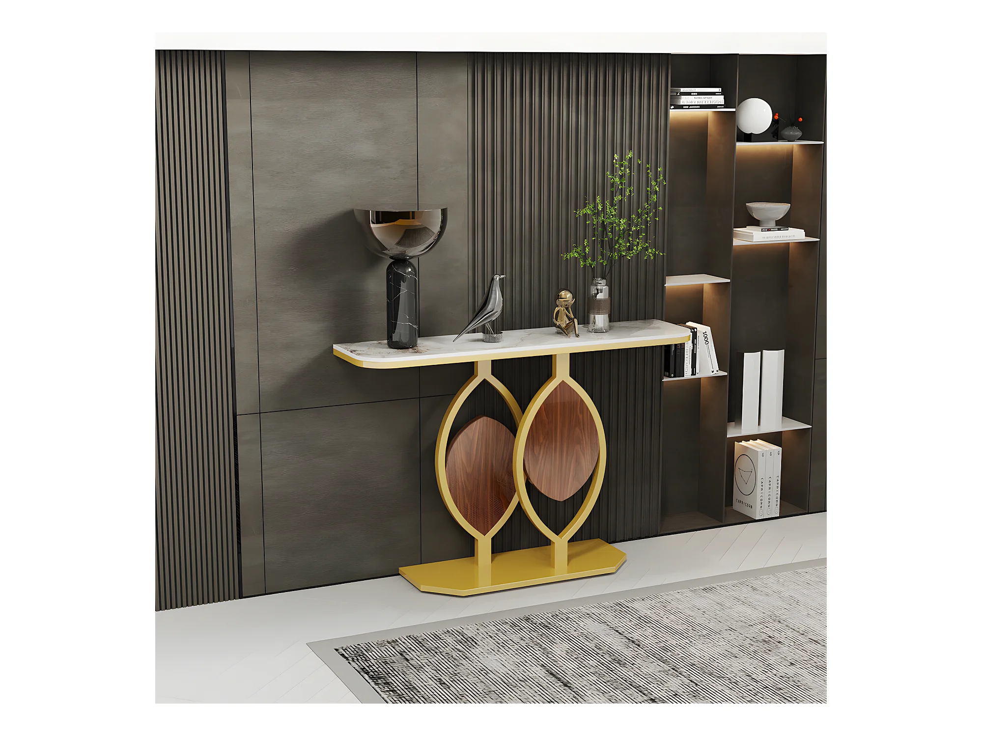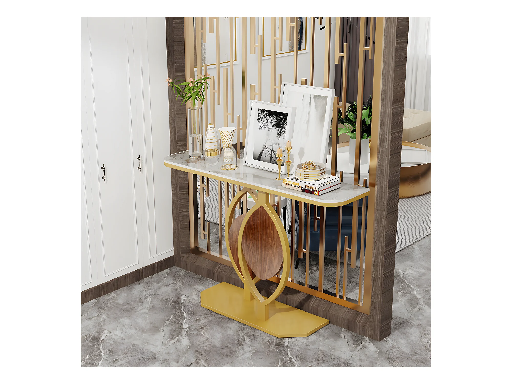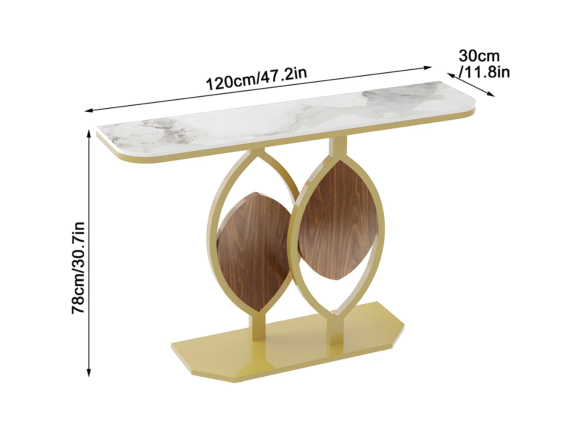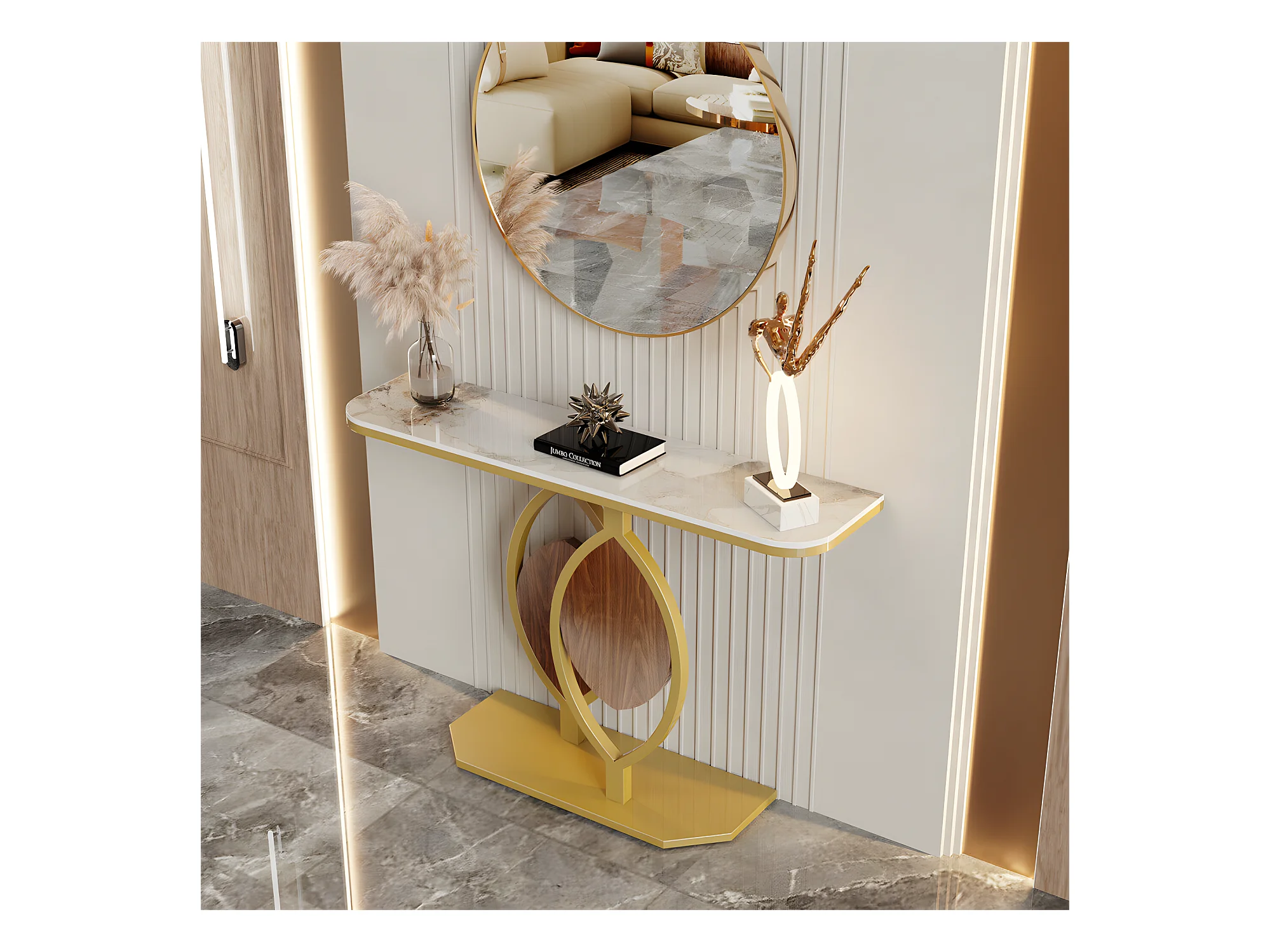 Table console meuble entrée marbre doré pour couloir salon 120x30x78cm