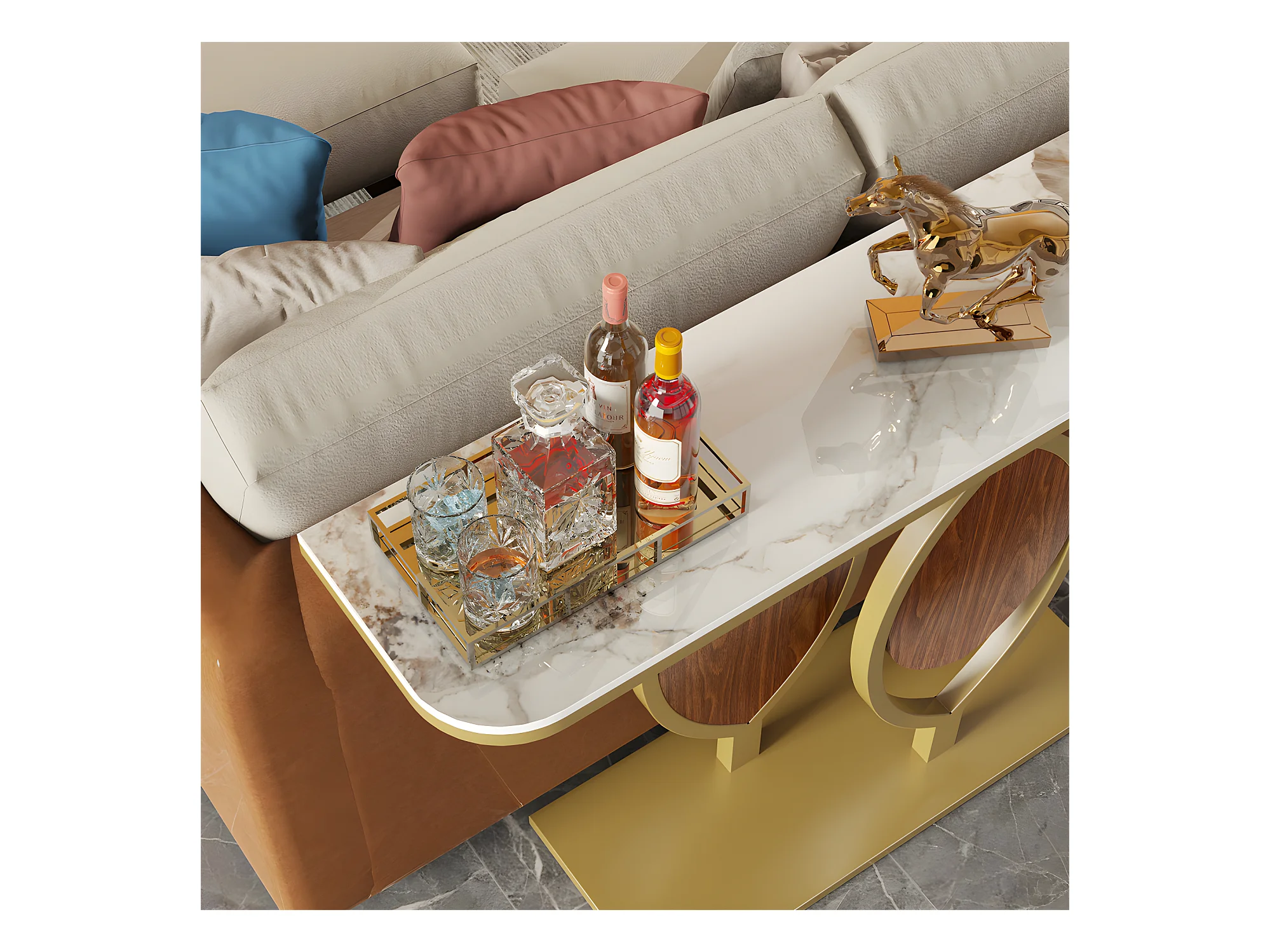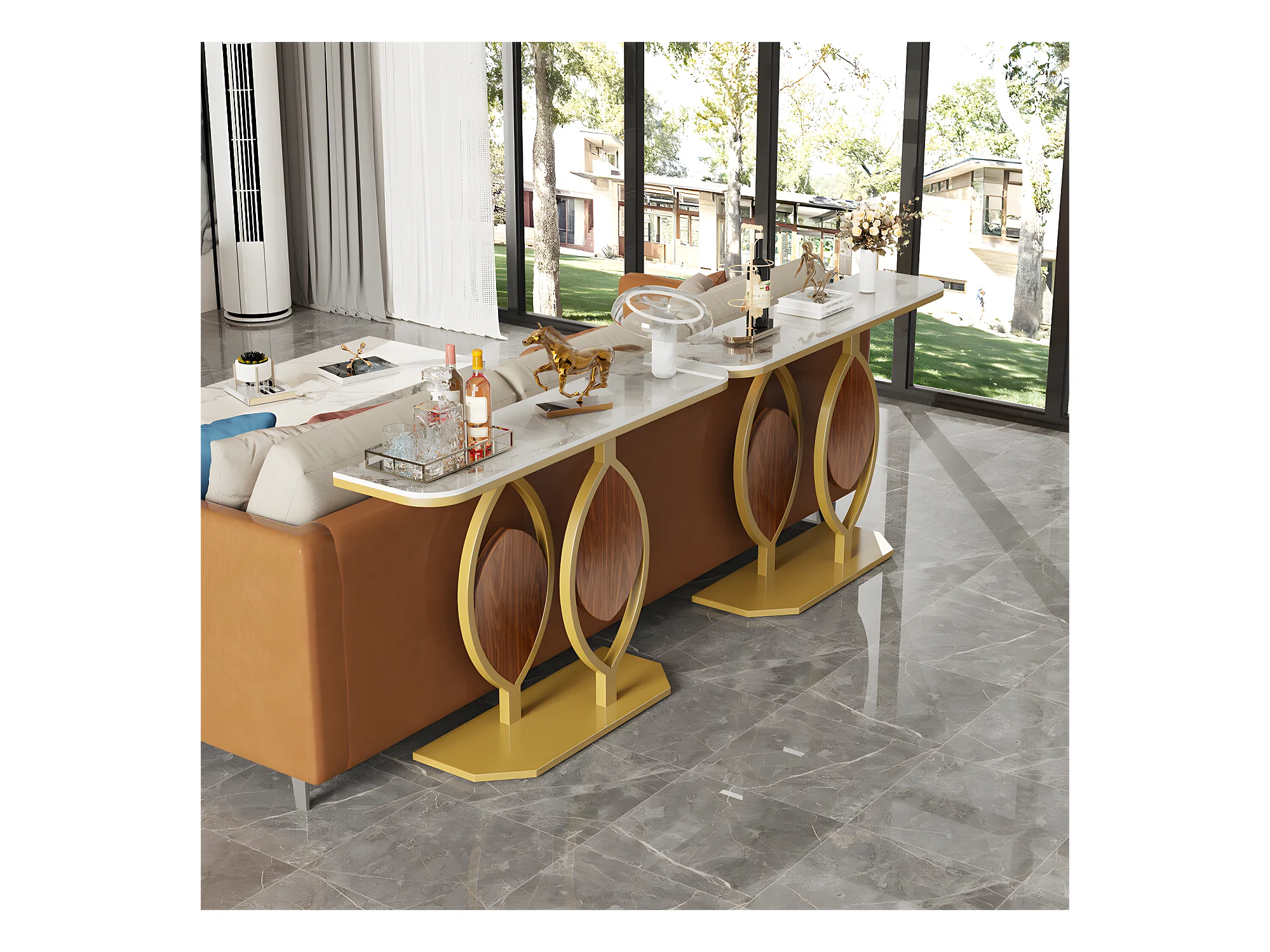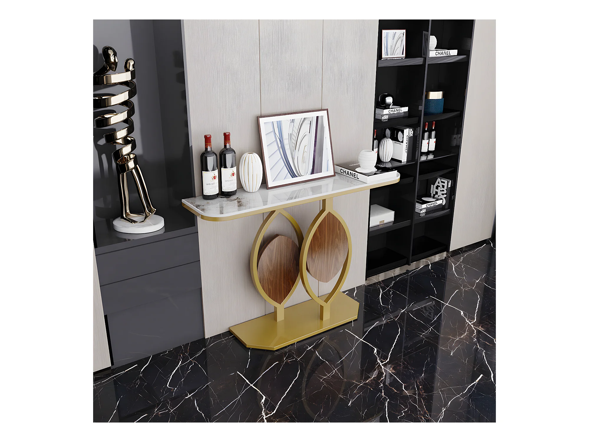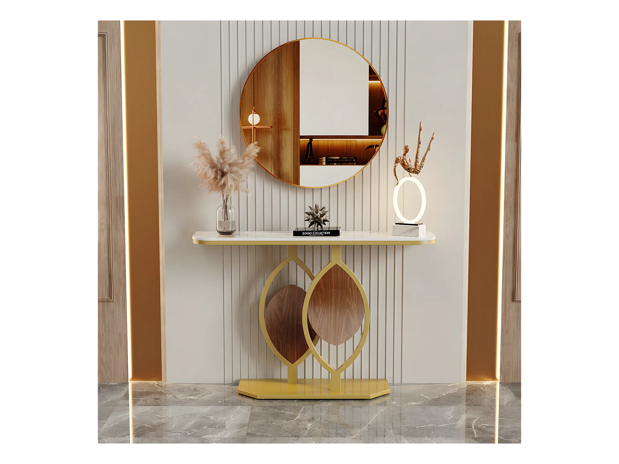 Table console meuble entrée marbre doré pour couloir salon 120x30x78cm