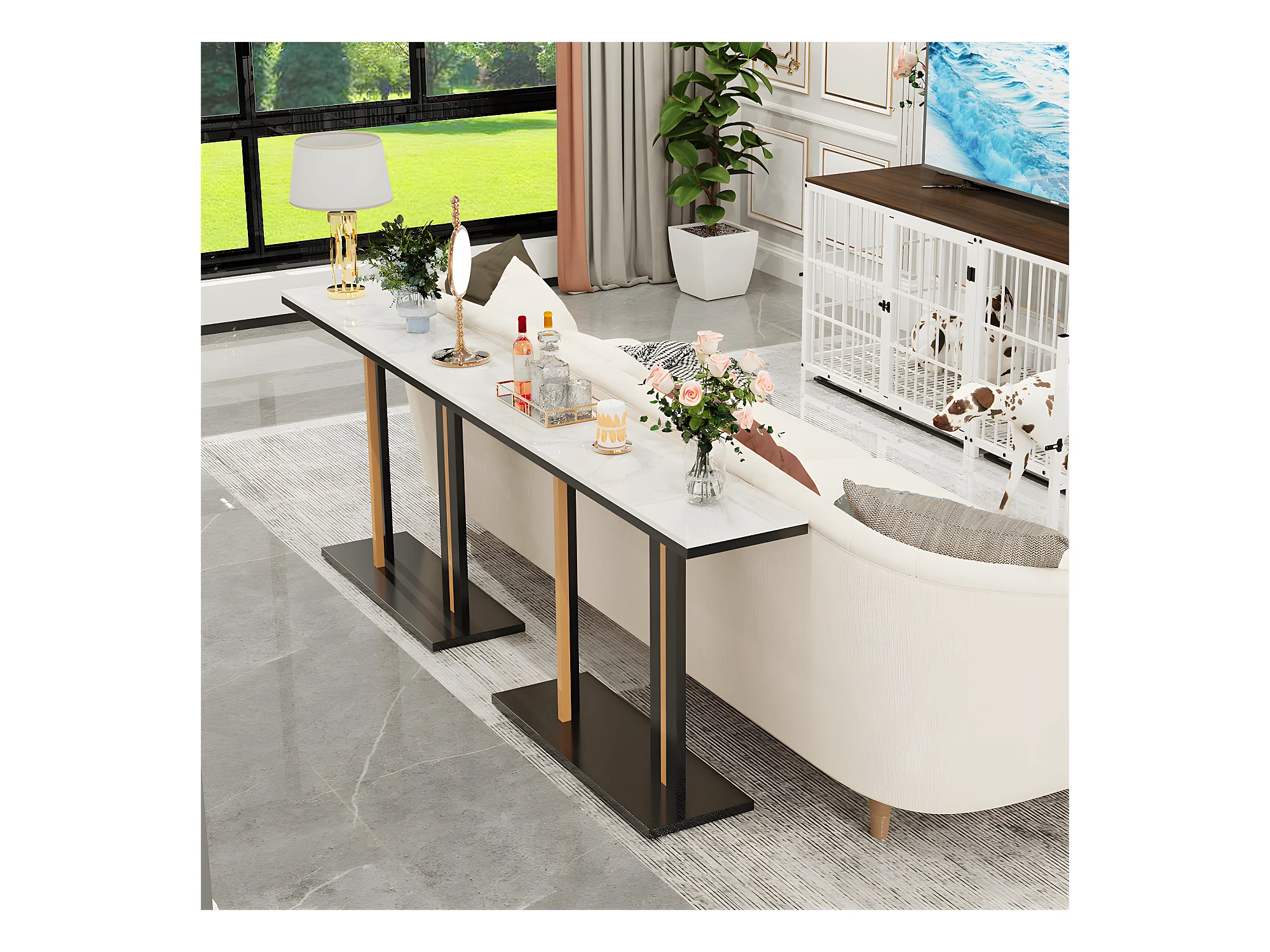 Table console meuble entrée marbre bout de canapé pour salon 118x30x78cm