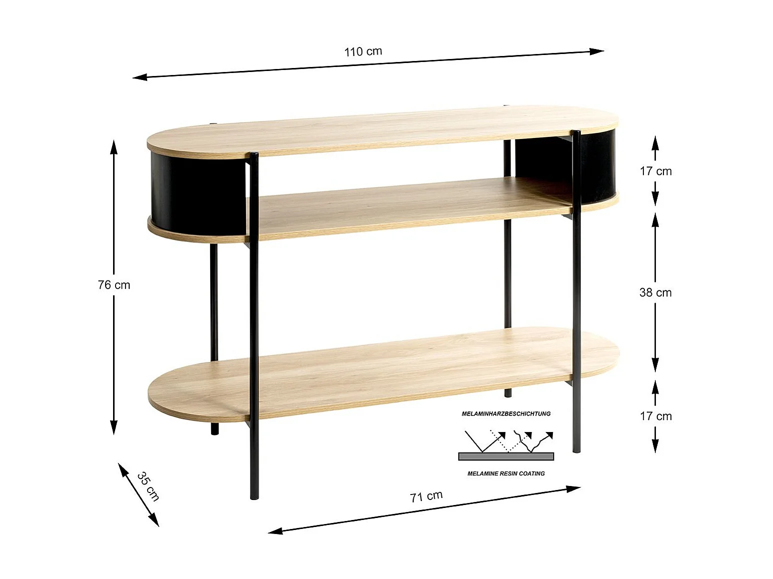Table console meuble salon coloris chêne/Noir - Longueur 110 x Hauteur 76 x Profondeur 39 cm