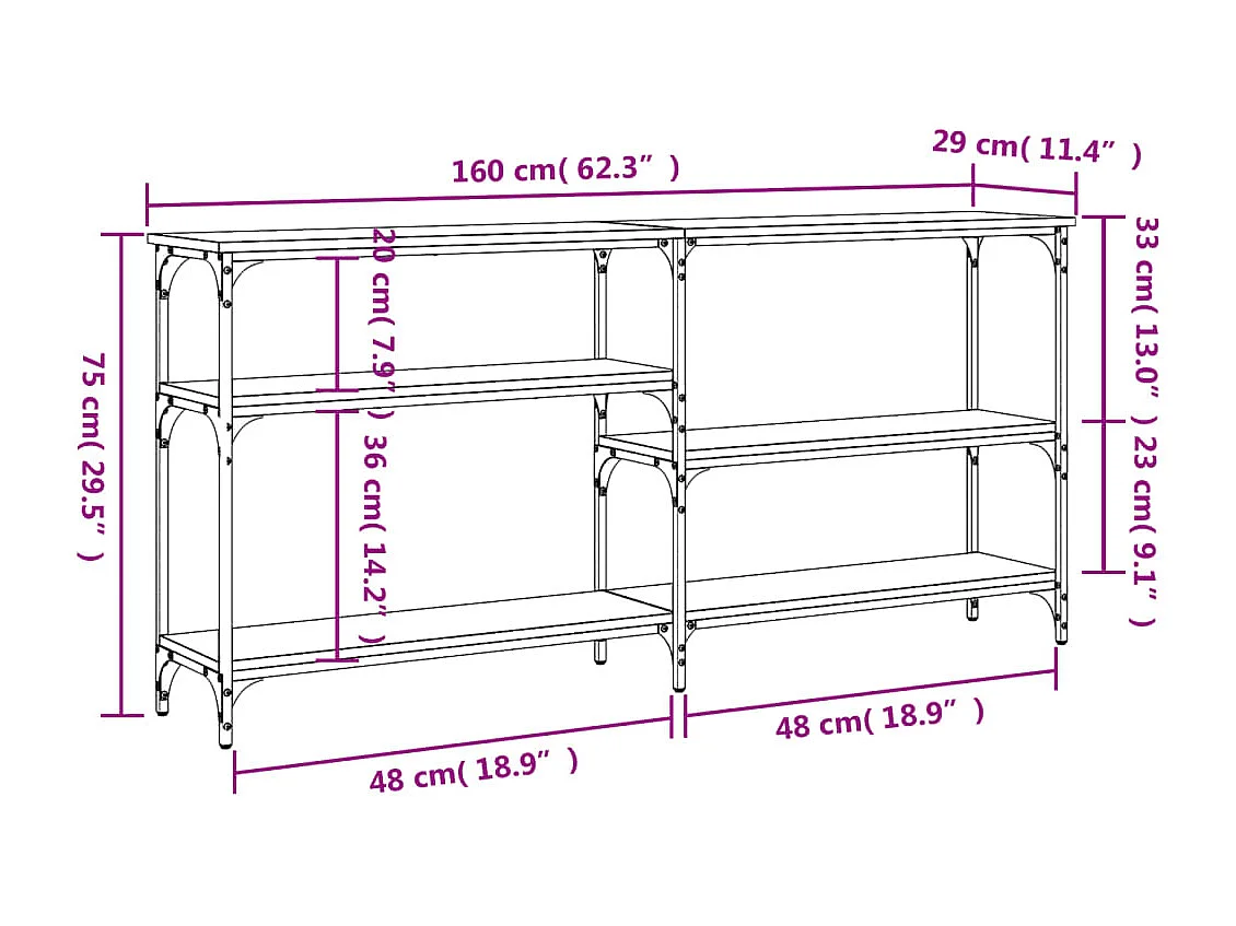 Table console noir 160x29x75 cm Bois d'ingénierie