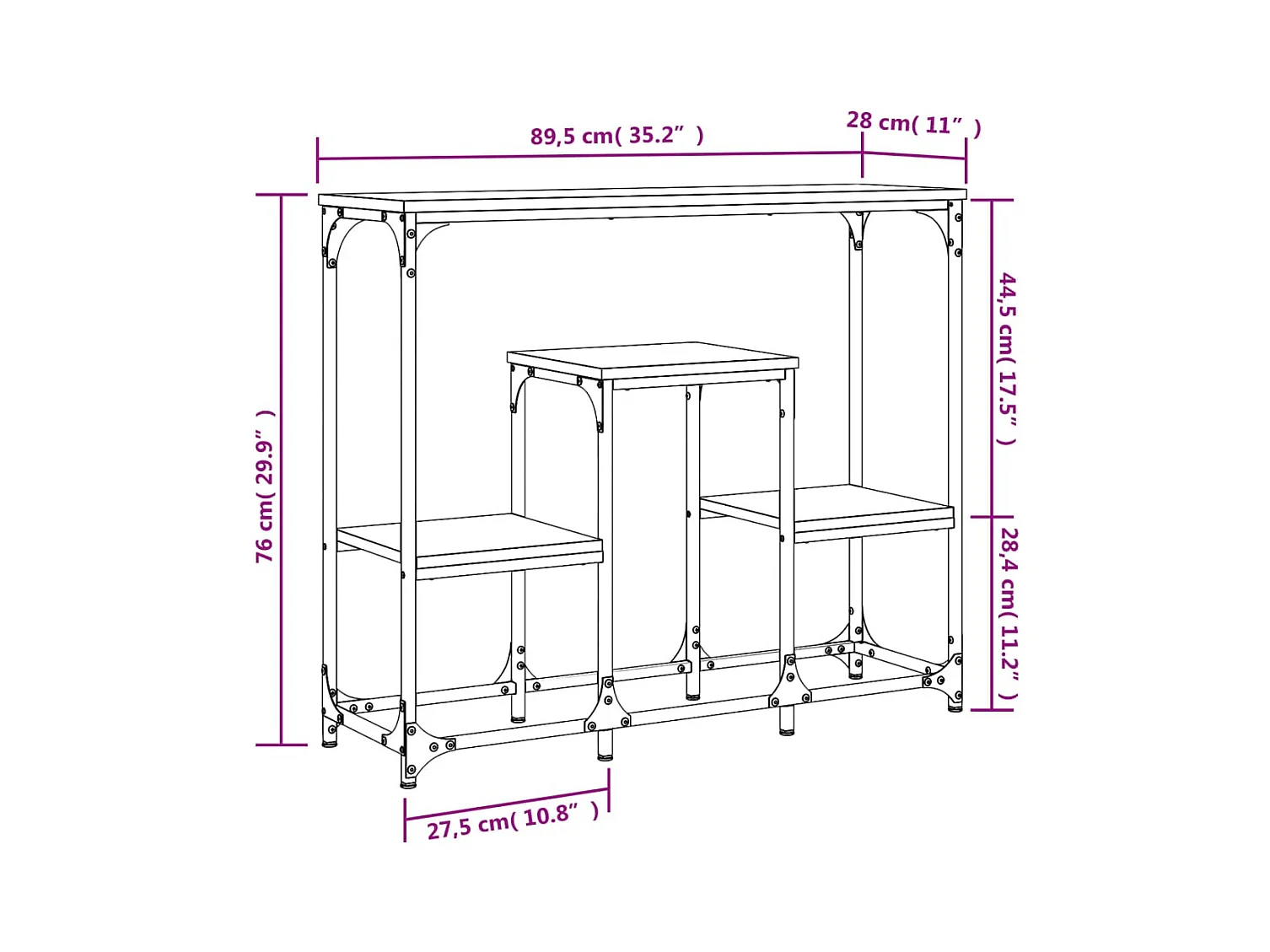 Console noir 89,5x28x76 cm bois d'ingénierie OFR32902 BonneVie Meuble