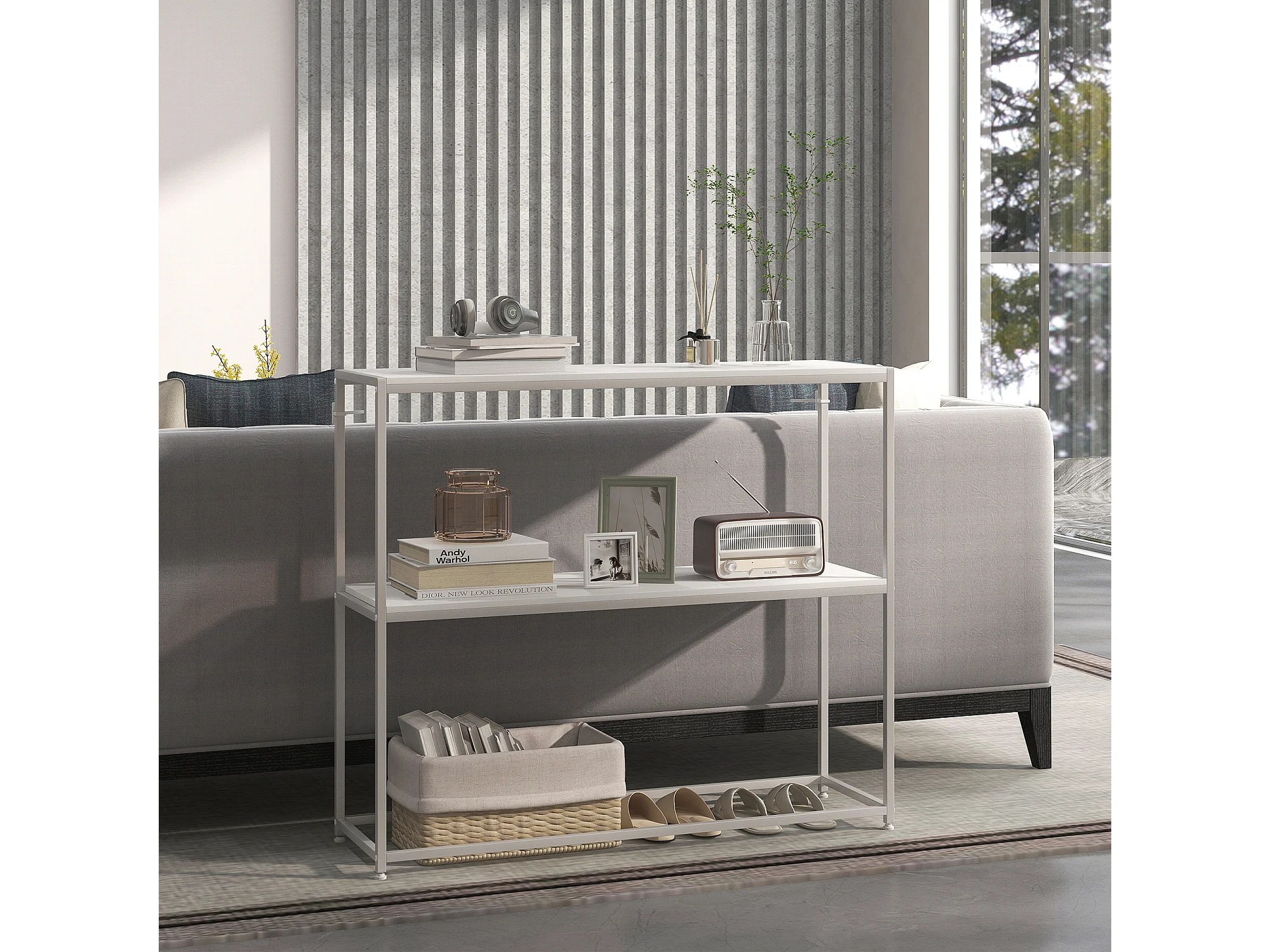 Table console plateau étagère dim. 100L x 30l x 87H cm acier panneaux blanc