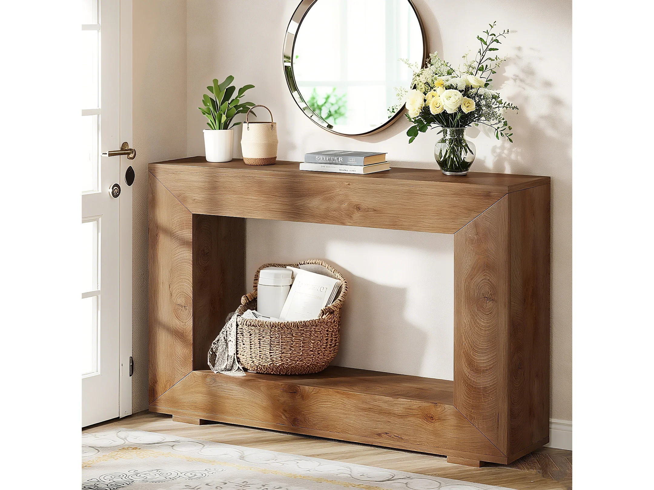 Table Console d'Entrée, 120 x 30 x 83.5cm, Table d'Appoint pour Couloir et Salon avec Espace de Rangement, Marron Rustique