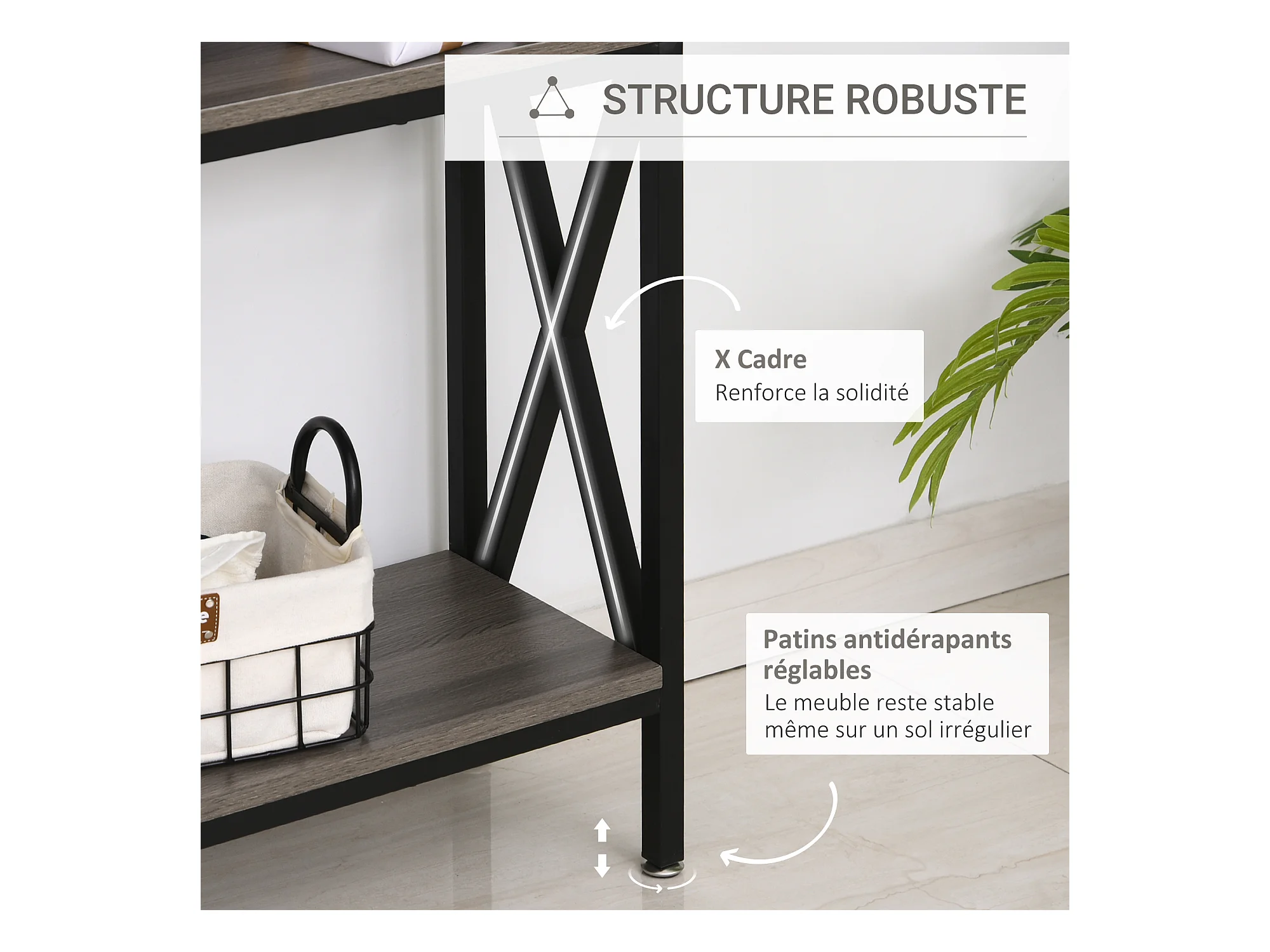 Console table d'appoint design industriel dim. 106L x 23l x 76H cm étagère acier noir panneaux particules bois gris