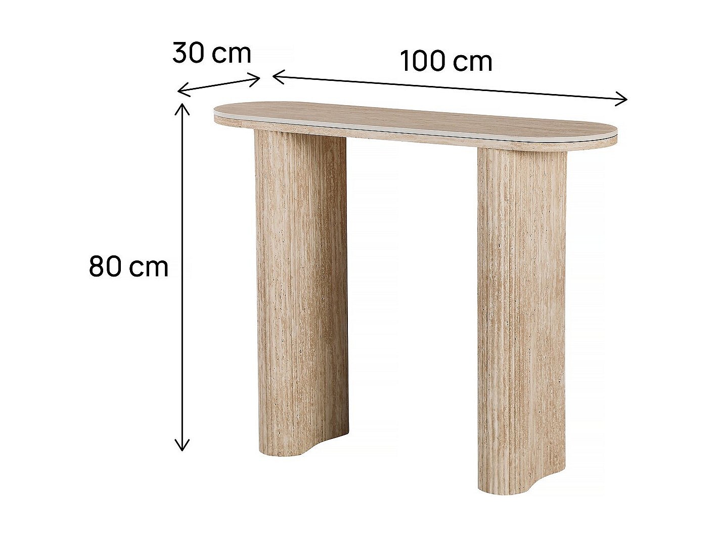 Table console travertin en céramique "Alba" - 100 x 30 x 80 cm - Marron