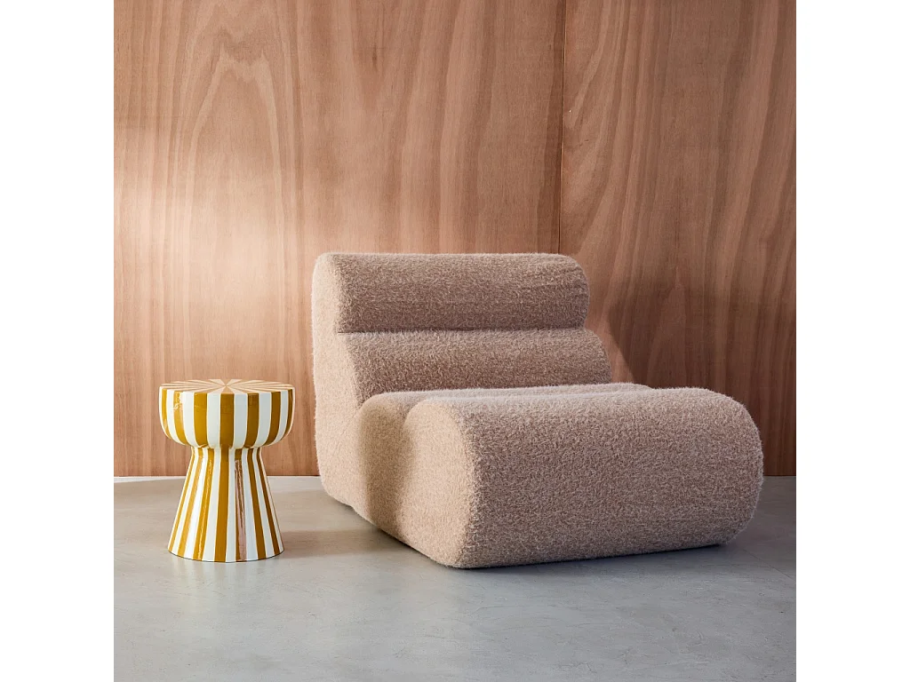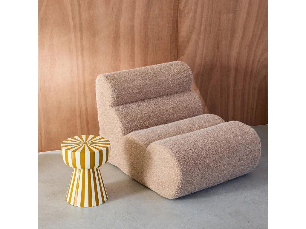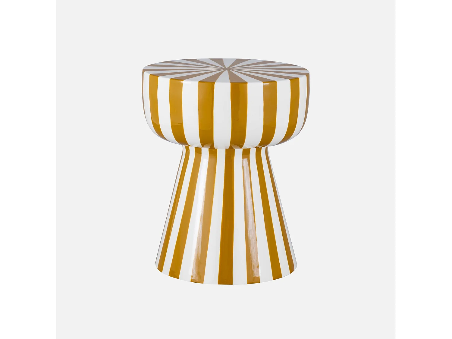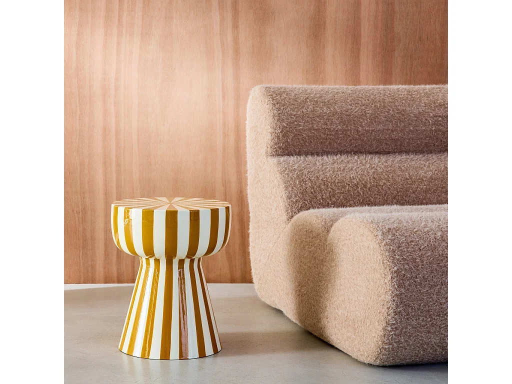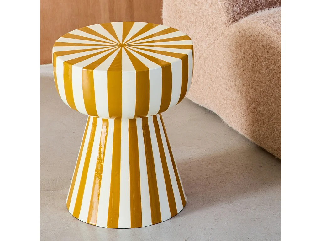Table d'appoint. bout de canapé. table de chevet. acier émaillé rayures bicolore. ocre et blanc. Ø34 x H41cm