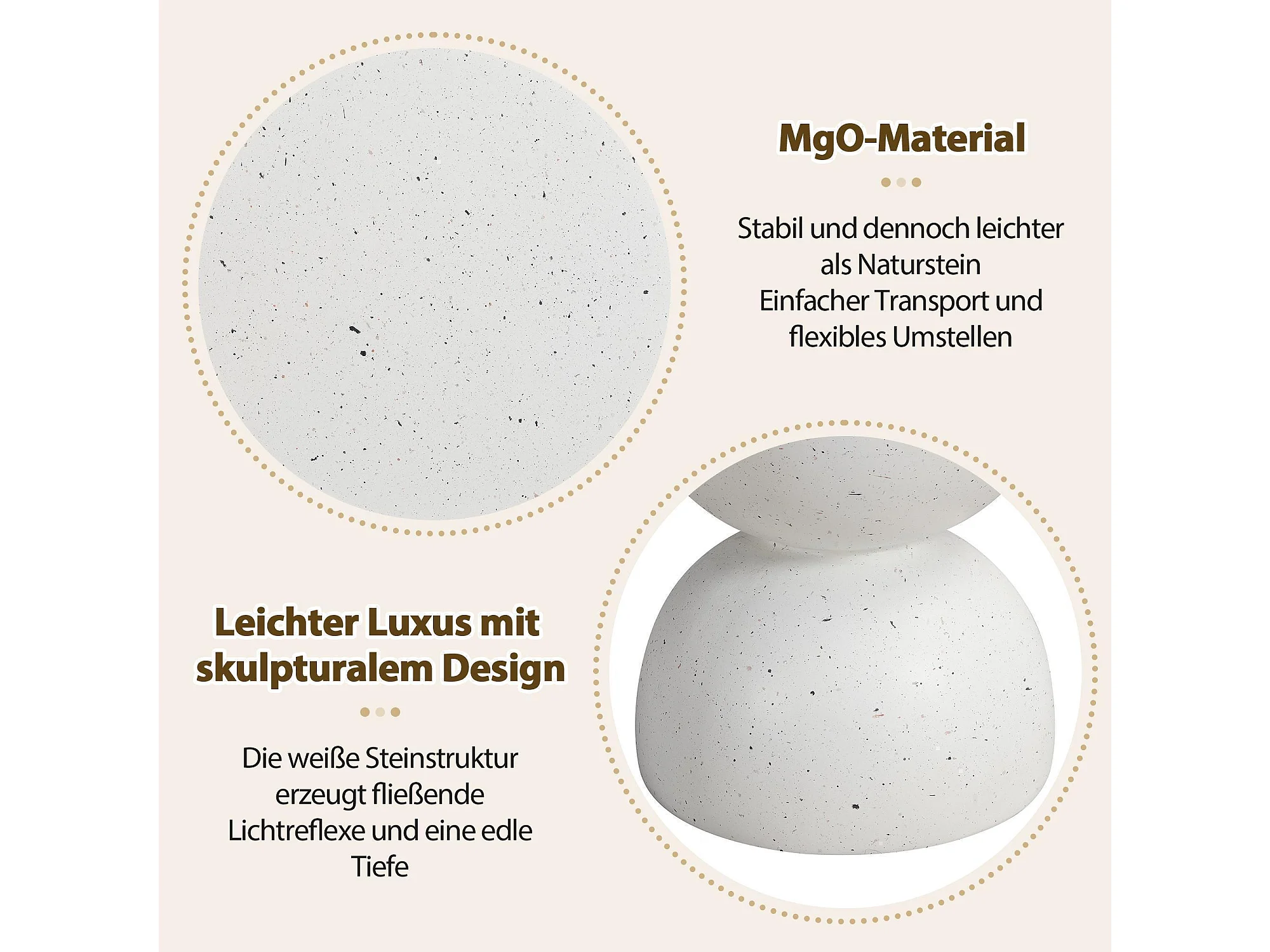 Table d'appoint d'extérieur en MgO, légère et pratique, en terrazzo blanc
