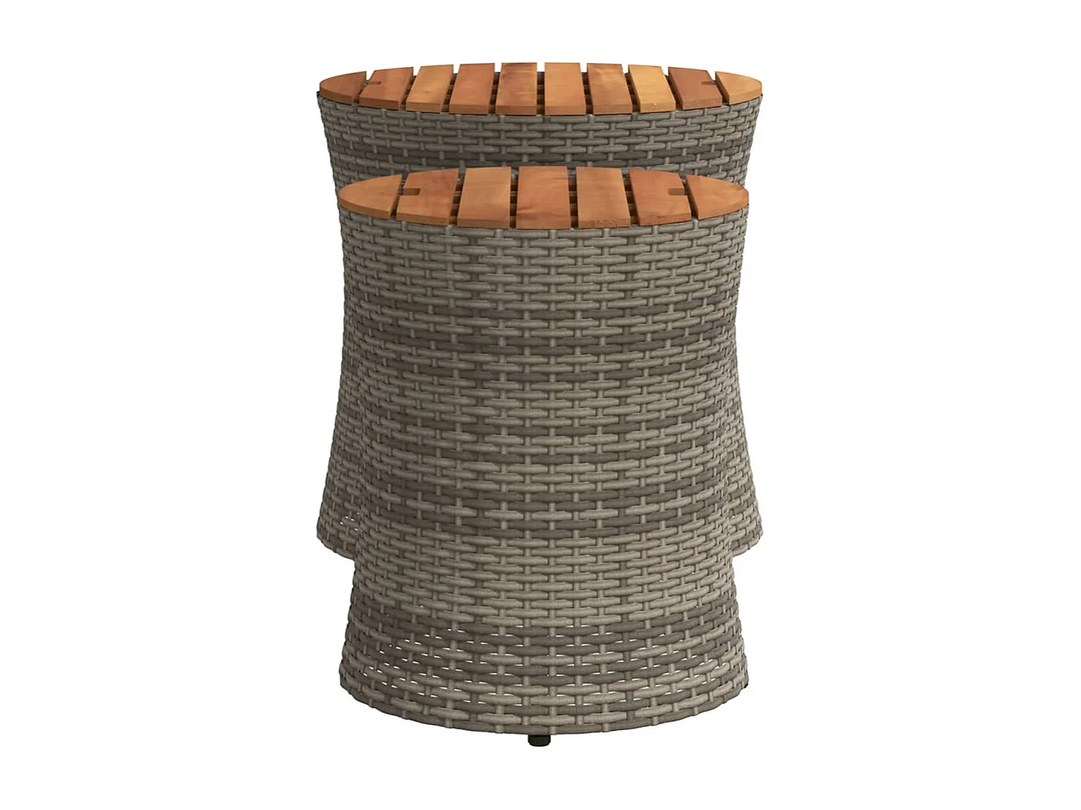 Table d'appoint de jardin 2 pc dessus en bois gris poly rotin