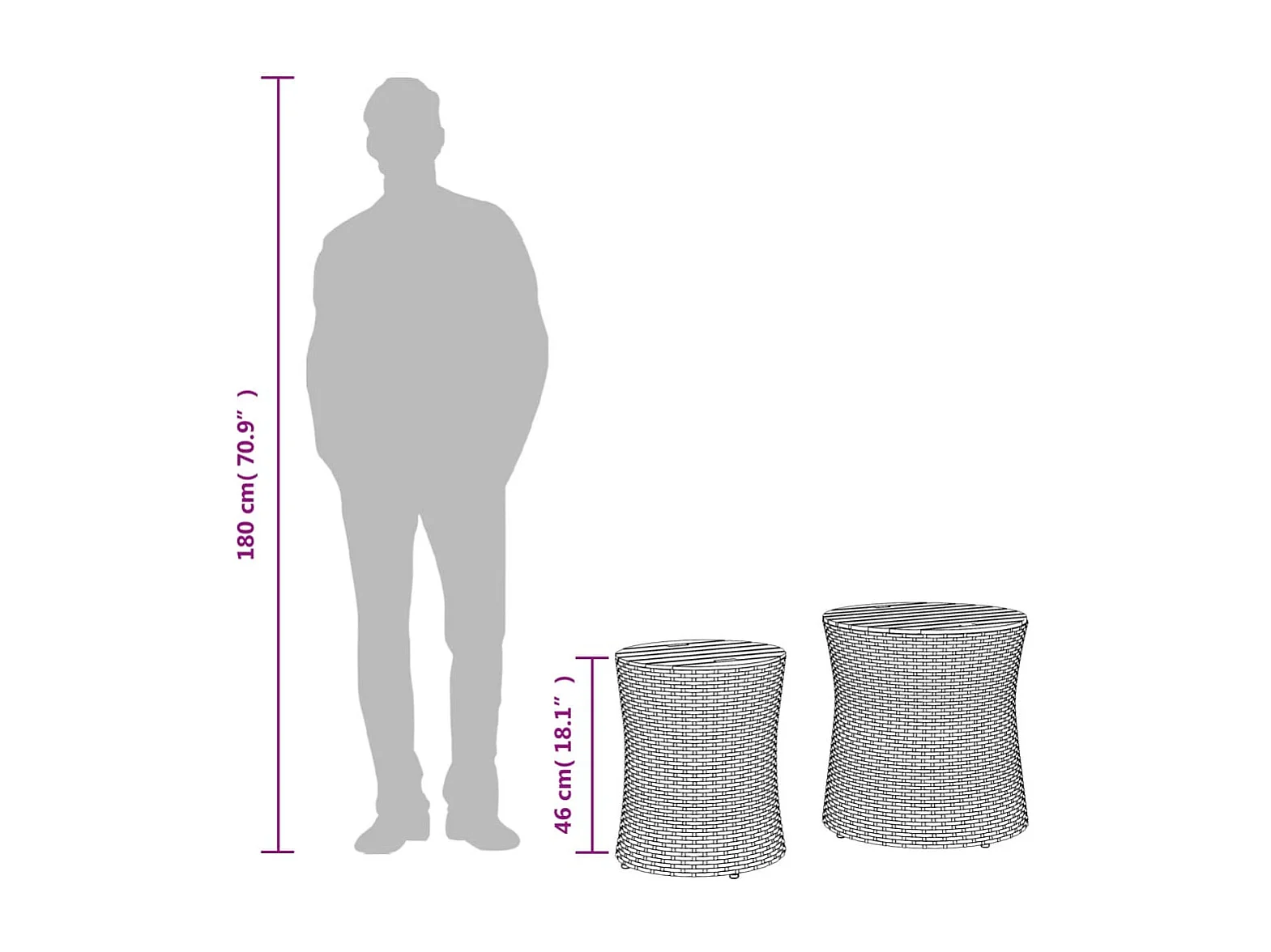 Table d'appoint de jardin 2 pc dessus en bois noir poly rotin