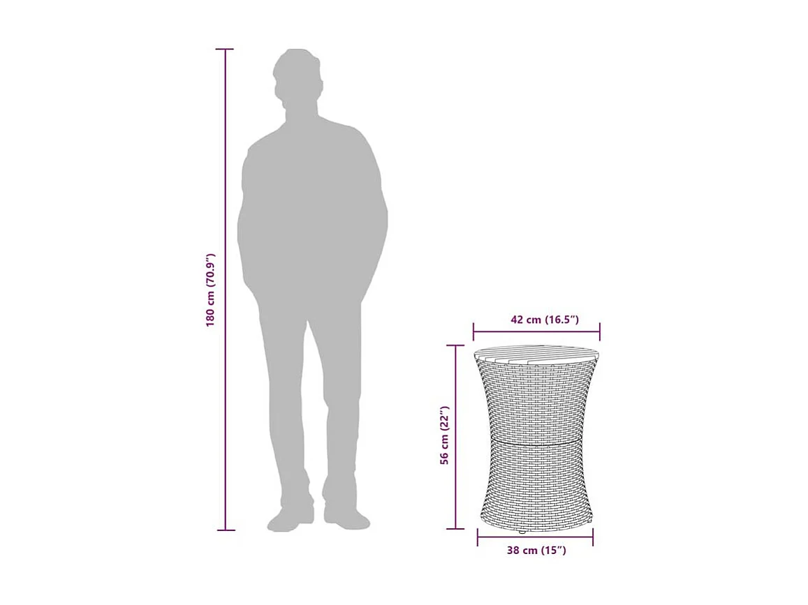 Table d'appoint de jardin forme tambour beige rotin bois massif