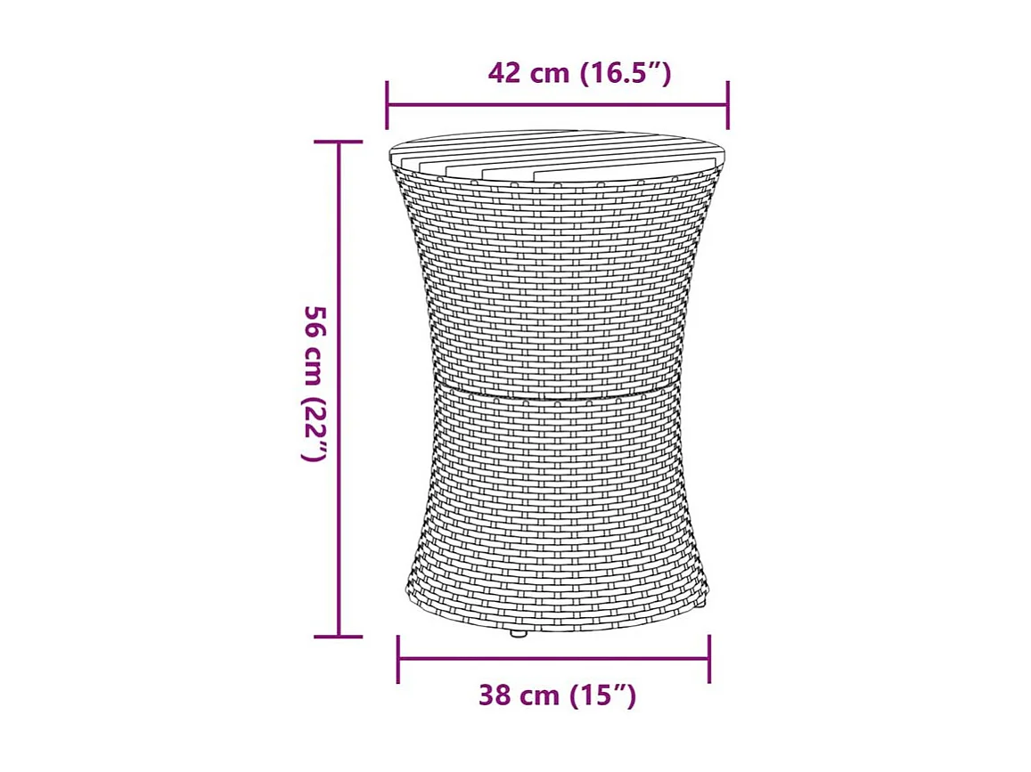Table d'appoint de jardin forme tambour gris rotin bois massif