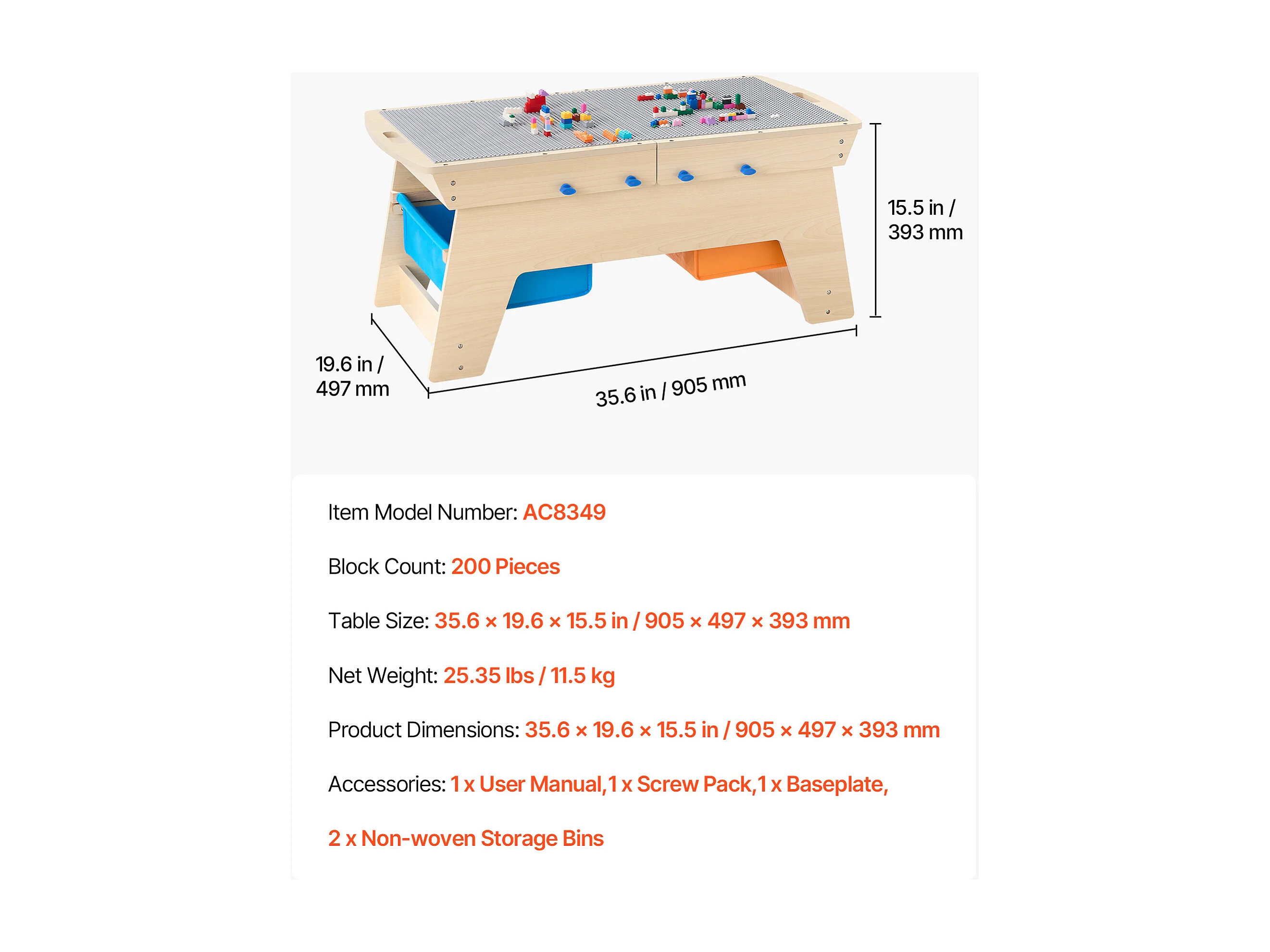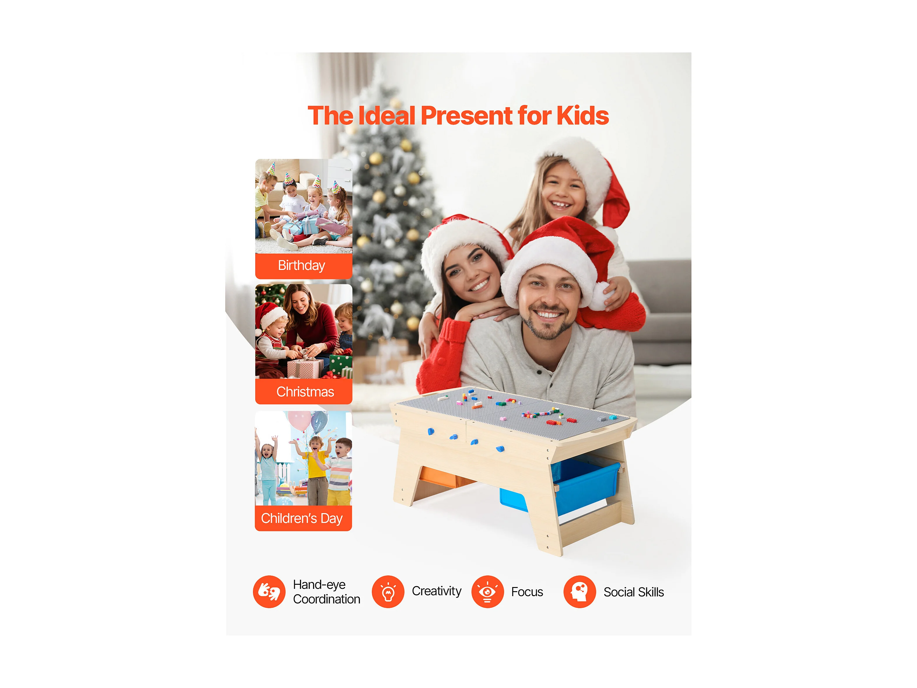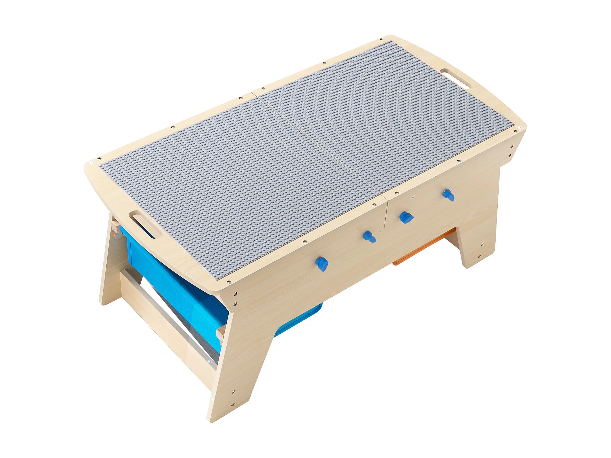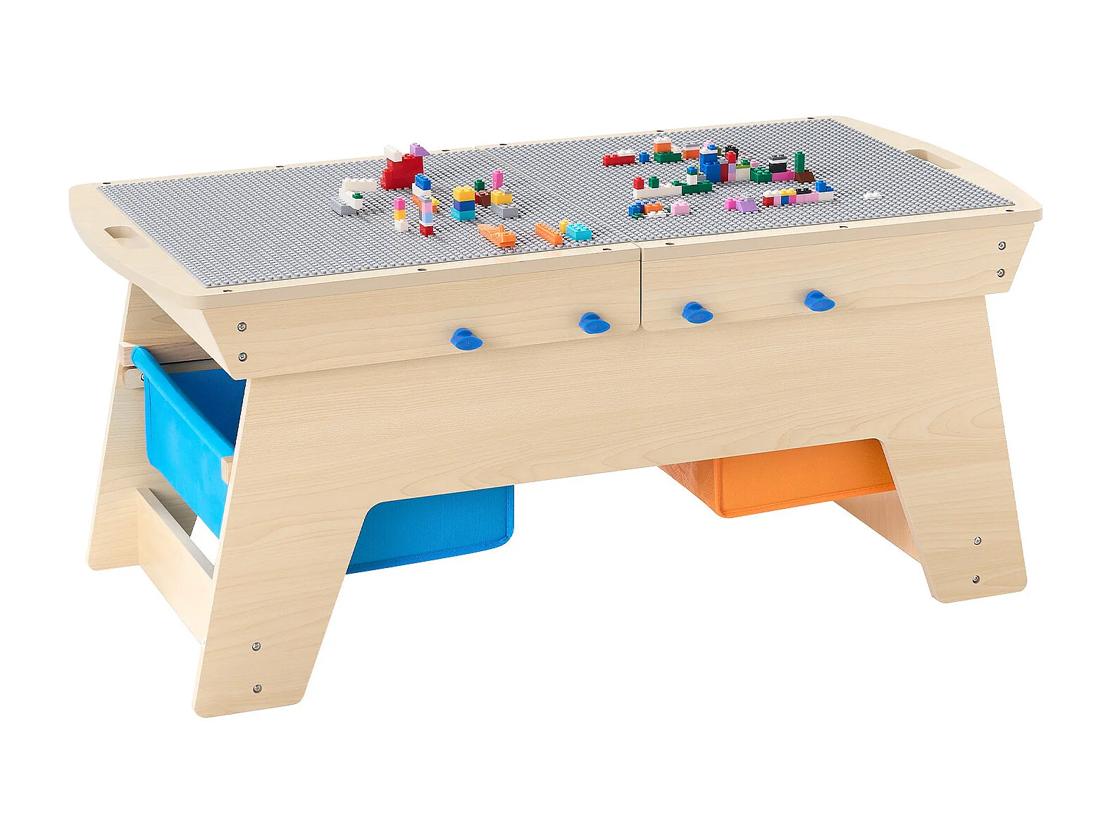 Table d'Activités SucceBuy pour Enfants avec 200 Blocs de Construction, Table de Jeu Multifonction en Bois, avec 3 Bacs de Rangement de Grand Espace