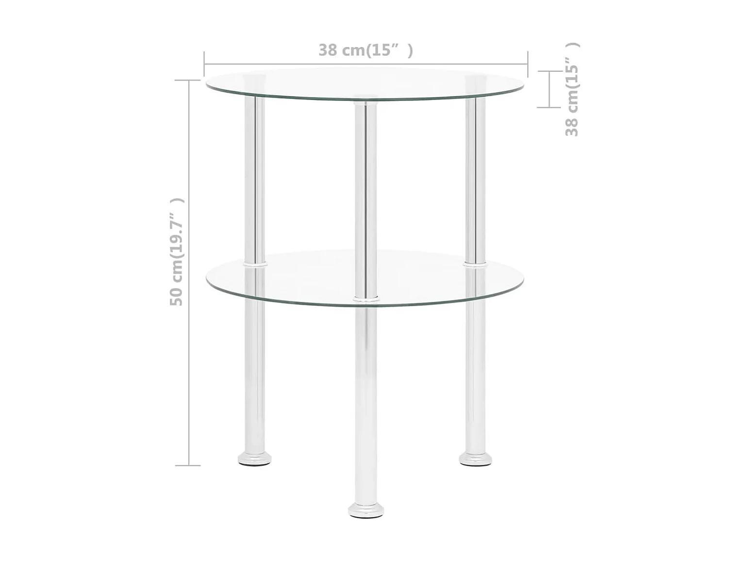 Table d'appoint 2 niveaux Transparent 38 cm Verre trempé