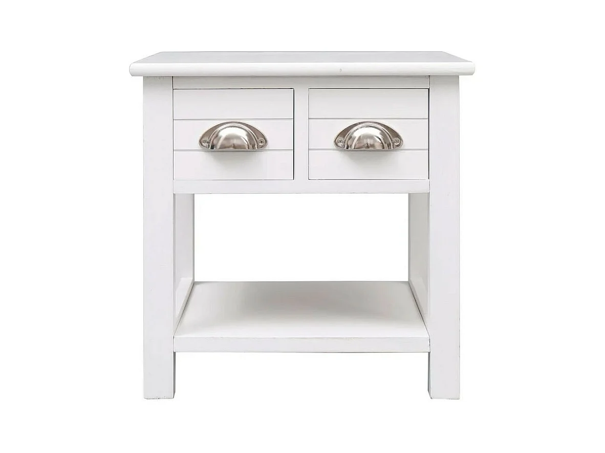 Table d'appoint 2 tiroirs paulownia massif blanc Amatar