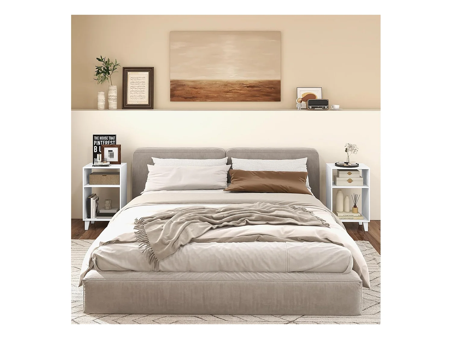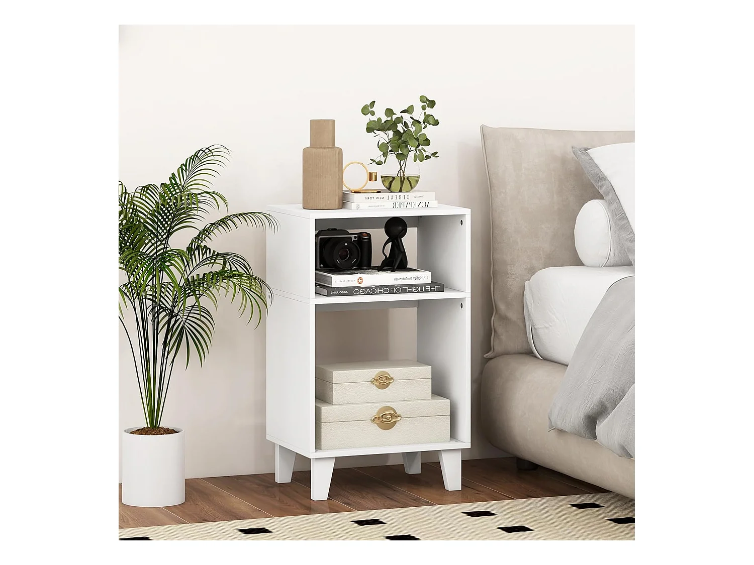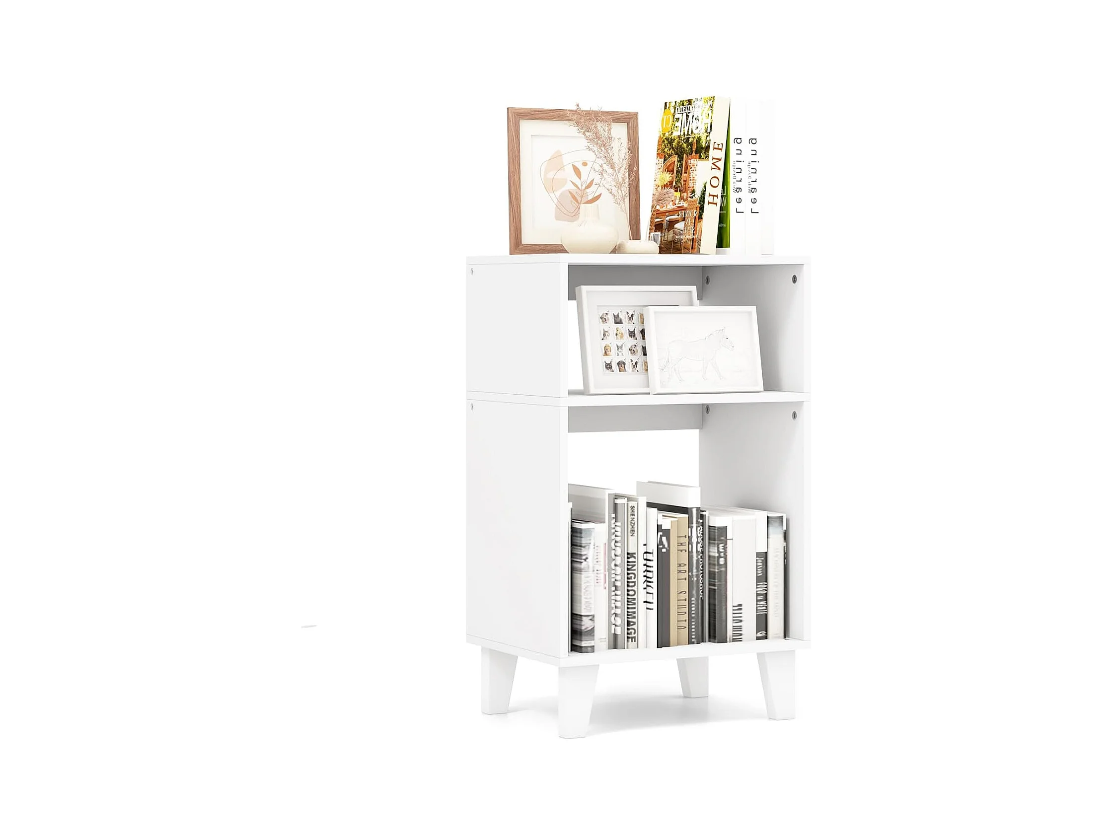 Table d’appoint, en forme ‘s’ avec 2 casiers ouverts, petite table basse 3 étagères,blanc